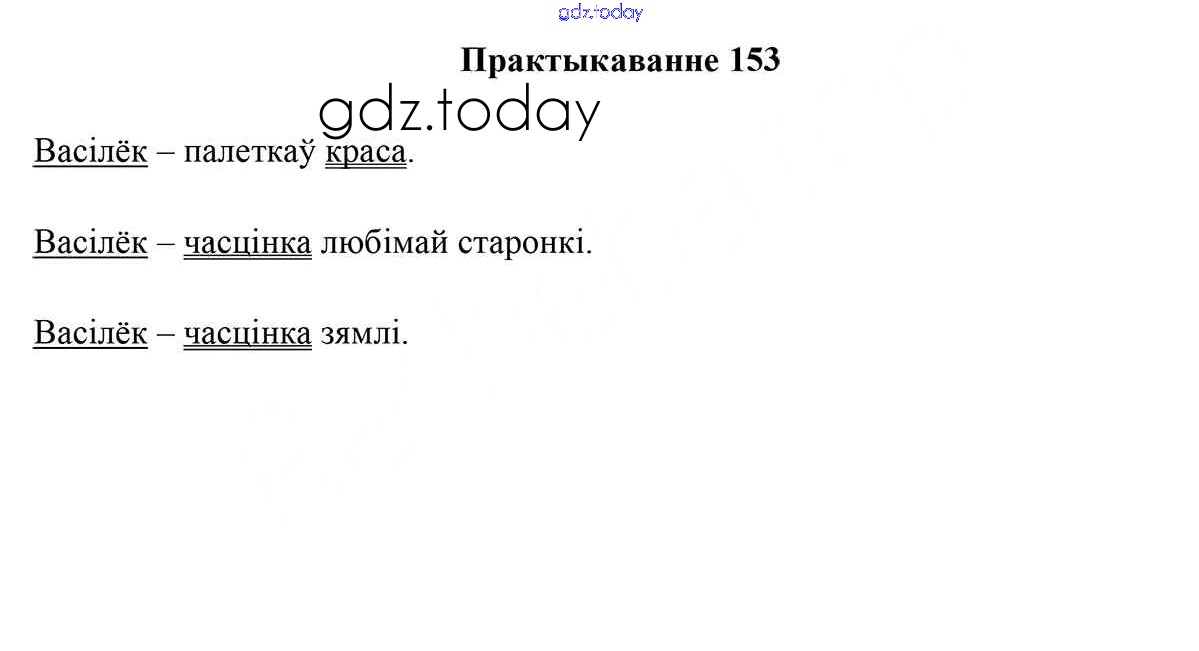 На страницах сайта gdz.today вы найдете учебный и вспомогательный материал, направленный на улучшения знаний школьной программы. ГДЗ - онлайн мир знаний Рашальнік да часткі 1. Практыкаванні 153 Учебнику по Белорусскому языку для 5 класса Валочка, Зелянко Национальный институт образования 2019