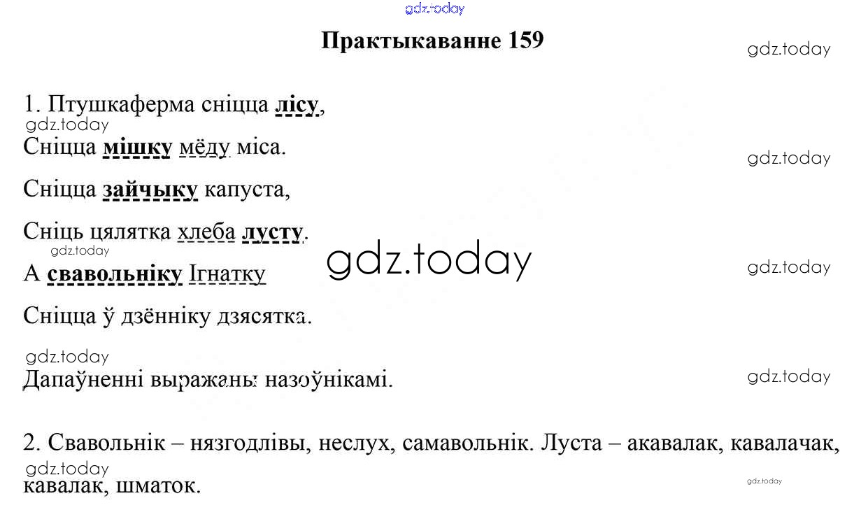 На страницах сайта gdz.today вы найдете учебный и вспомогательный материал, направленный на улучшения знаний школьной программы. ГДЗ - онлайн мир знаний Рашальнік да часткі 1. Практыкаванні 159 Учебнику по Белорусскому языку для 5 класса Валочка, Зелянко Национальный институт образования 2019