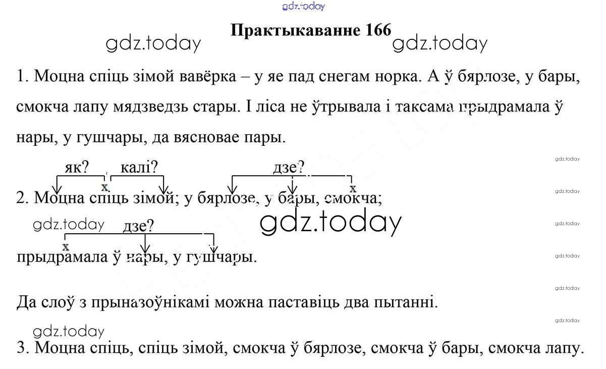 На страницах сайта gdz.today вы найдете учебный и вспомогательный материал, направленный на улучшения знаний школьной программы. ГДЗ - онлайн мир знаний Рашальнік да часткі 1. Практыкаванні 166 Учебнику по Белорусскому языку для 5 класса Валочка, Зелянко Национальный институт образования 2019