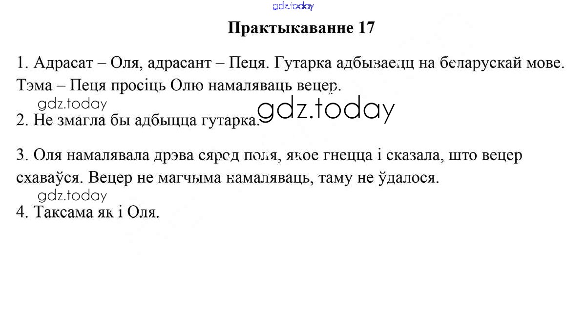 На страницах сайта gdz.today вы найдете учебный и вспомогательный материал, направленный на улучшения знаний школьной программы. ГДЗ - онлайн мир знаний Рашальнік да часткі 1. Практыкаванні 17 Учебнику по Белорусскому языку для 5 класса Валочка, Зелянко Национальный институт образования 2019