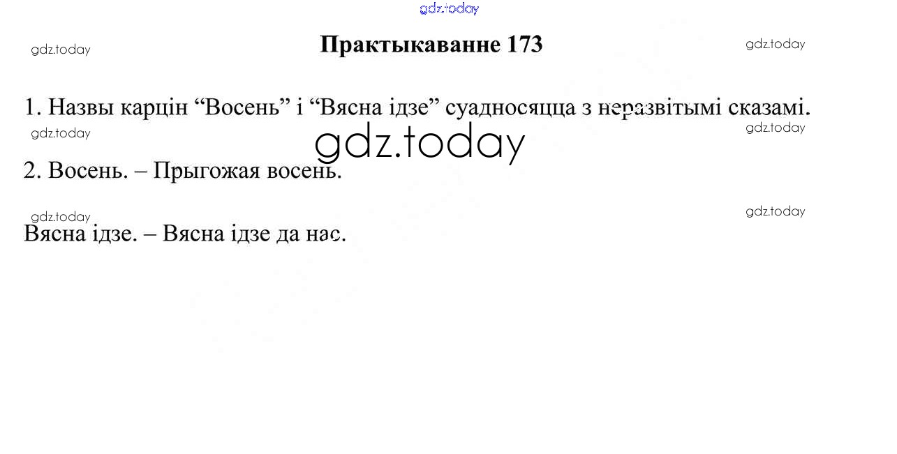 На страницах сайта gdz.today вы найдете учебный и вспомогательный материал, направленный на улучшения знаний школьной программы. ГДЗ - онлайн мир знаний Рашальнік да часткі 1. Практыкаванні 173 Учебнику по Белорусскому языку для 5 класса Валочка, Зелянко Национальный институт образования 2019