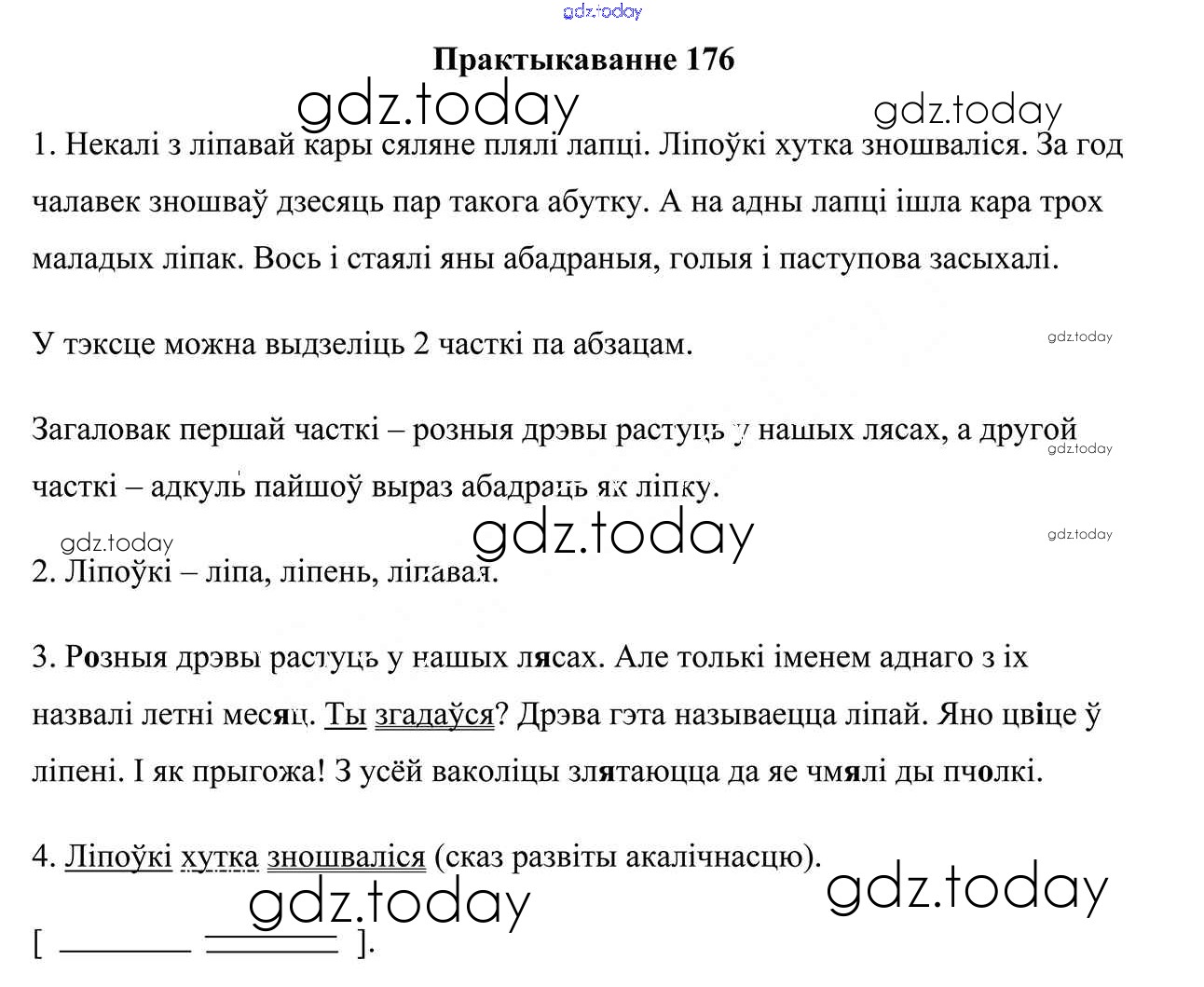 На страницах сайта gdz.today вы найдете учебный и вспомогательный материал, направленный на улучшения знаний школьной программы. ГДЗ - онлайн мир знаний Рашальнік да часткі 1. Практыкаванні 176 Учебнику по Белорусскому языку для 5 класса Валочка, Зелянко Национальный институт образования 2019