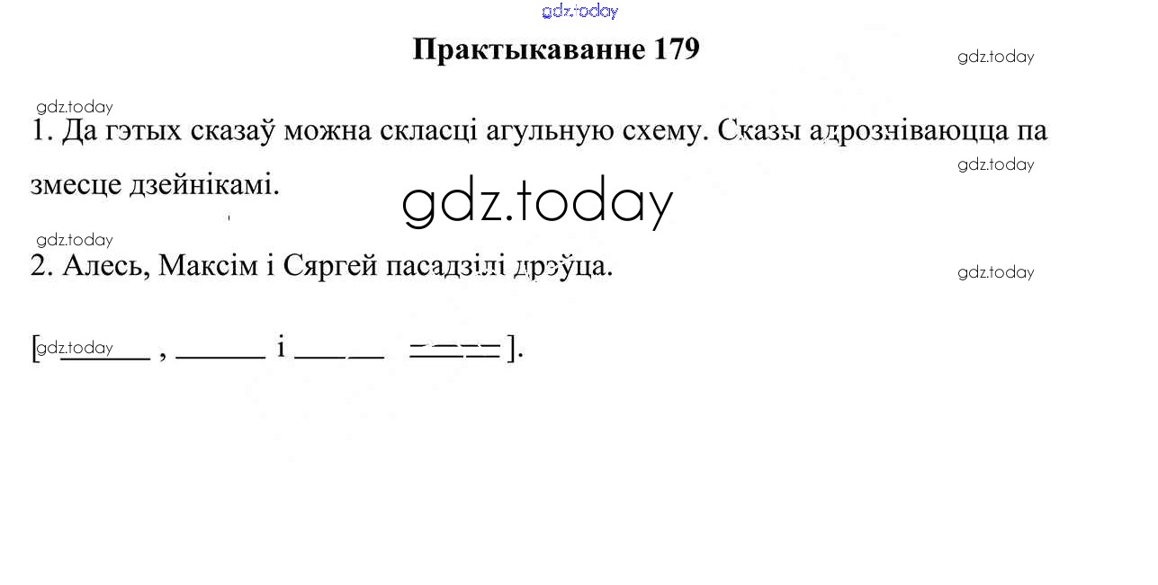 На страницах сайта gdz.today вы найдете учебный и вспомогательный материал, направленный на улучшения знаний школьной программы. ГДЗ - онлайн мир знаний Рашальнік да часткі 1. Практыкаванні 179 Учебнику по Белорусскому языку для 5 класса Валочка, Зелянко Национальный институт образования 2019