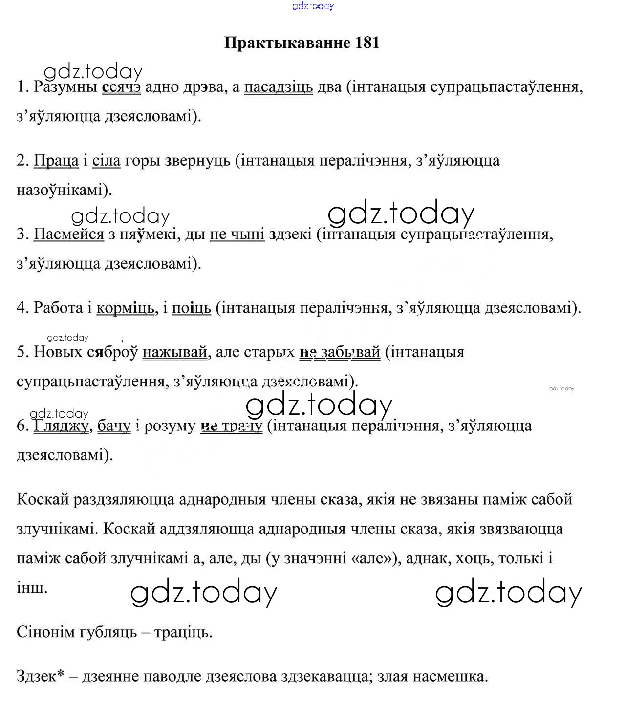 На страницах сайта gdz.today вы найдете учебный и вспомогательный материал, направленный на улучшения знаний школьной программы. ГДЗ - онлайн мир знаний Рашальнік да часткі 1. Практыкаванні 181 Учебнику по Белорусскому языку для 5 класса Валочка, Зелянко Национальный институт образования 2019