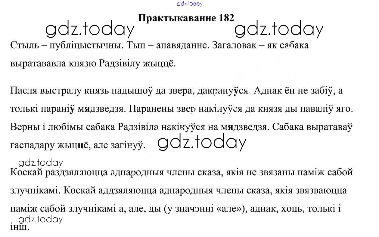 На страницах сайта gdz.today вы найдете учебный и вспомогательный материал, направленный на улучшения знаний школьной программы. ГДЗ - онлайн мир знаний Рашальнік да часткі 1. Практыкаванні 182 Учебнику по Белорусскому языку для 5 класса Валочка, Зелянко Национальный институт образования 2019