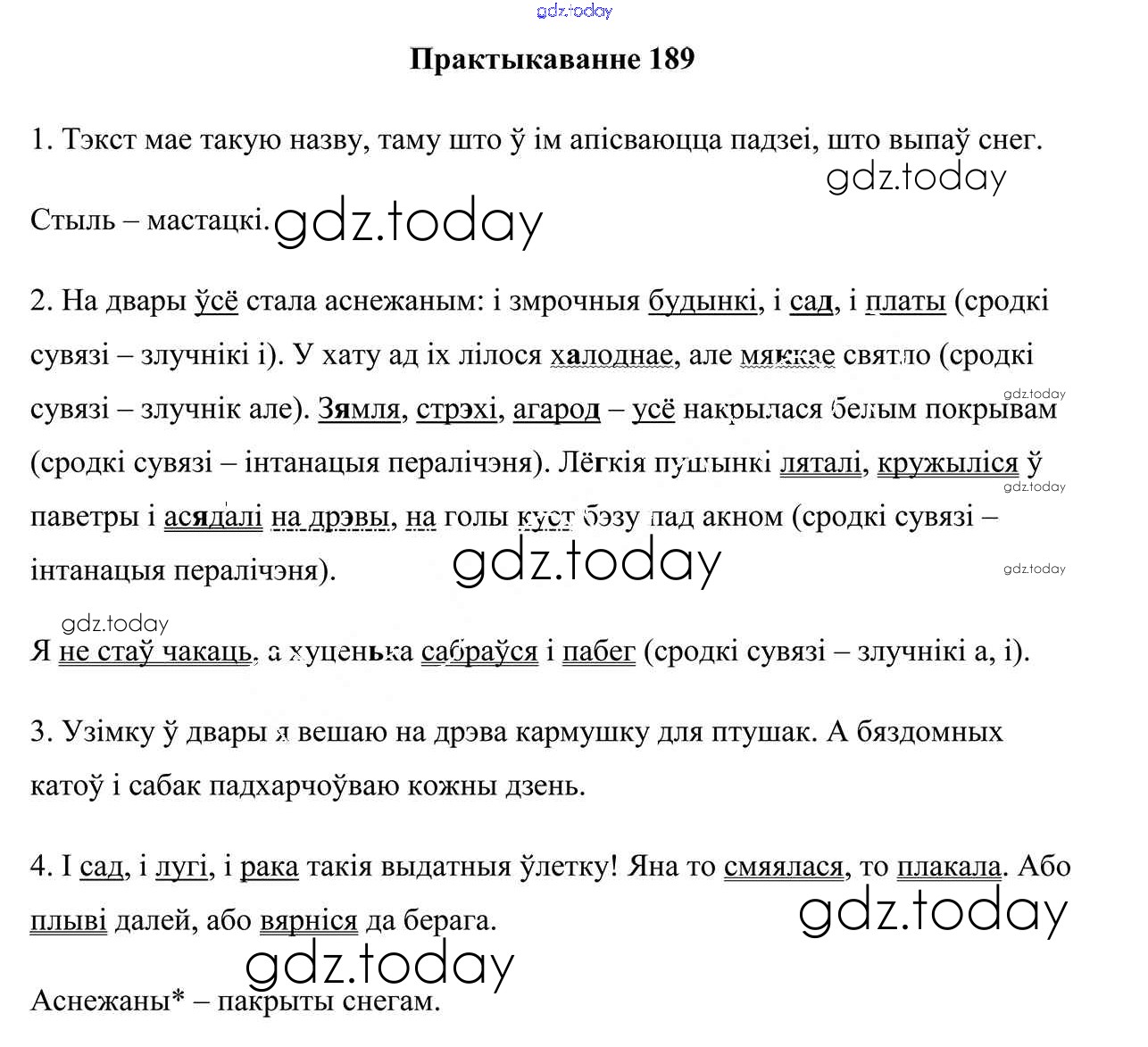 На страницах сайта gdz.today вы найдете учебный и вспомогательный материал, направленный на улучшения знаний школьной программы. ГДЗ - онлайн мир знаний Рашальнік да часткі 1. Практыкаванні 189 Учебнику по Белорусскому языку для 5 класса Валочка, Зелянко Национальный институт образования 2019