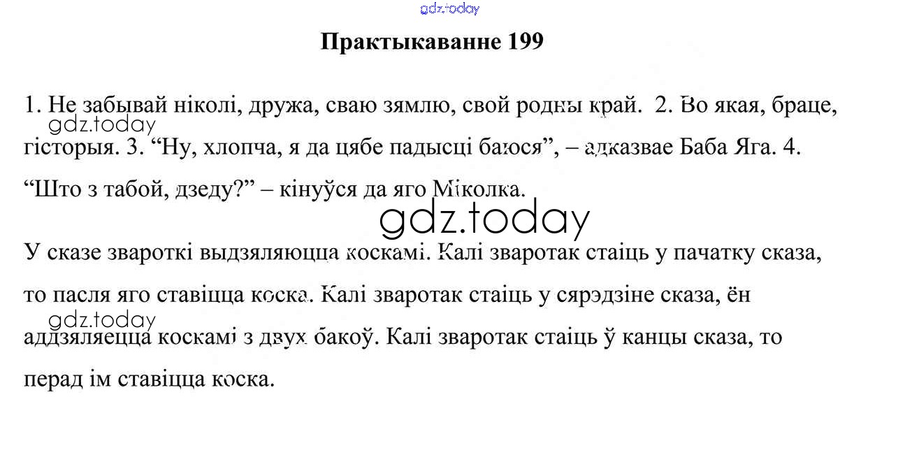 На страницах сайта gdz.today вы найдете учебный и вспомогательный материал, направленный на улучшения знаний школьной программы. ГДЗ - онлайн мир знаний Рашальнік да часткі 1. Практыкаванні 199 Учебнику по Белорусскому языку для 5 класса Валочка, Зелянко Национальный институт образования 2019