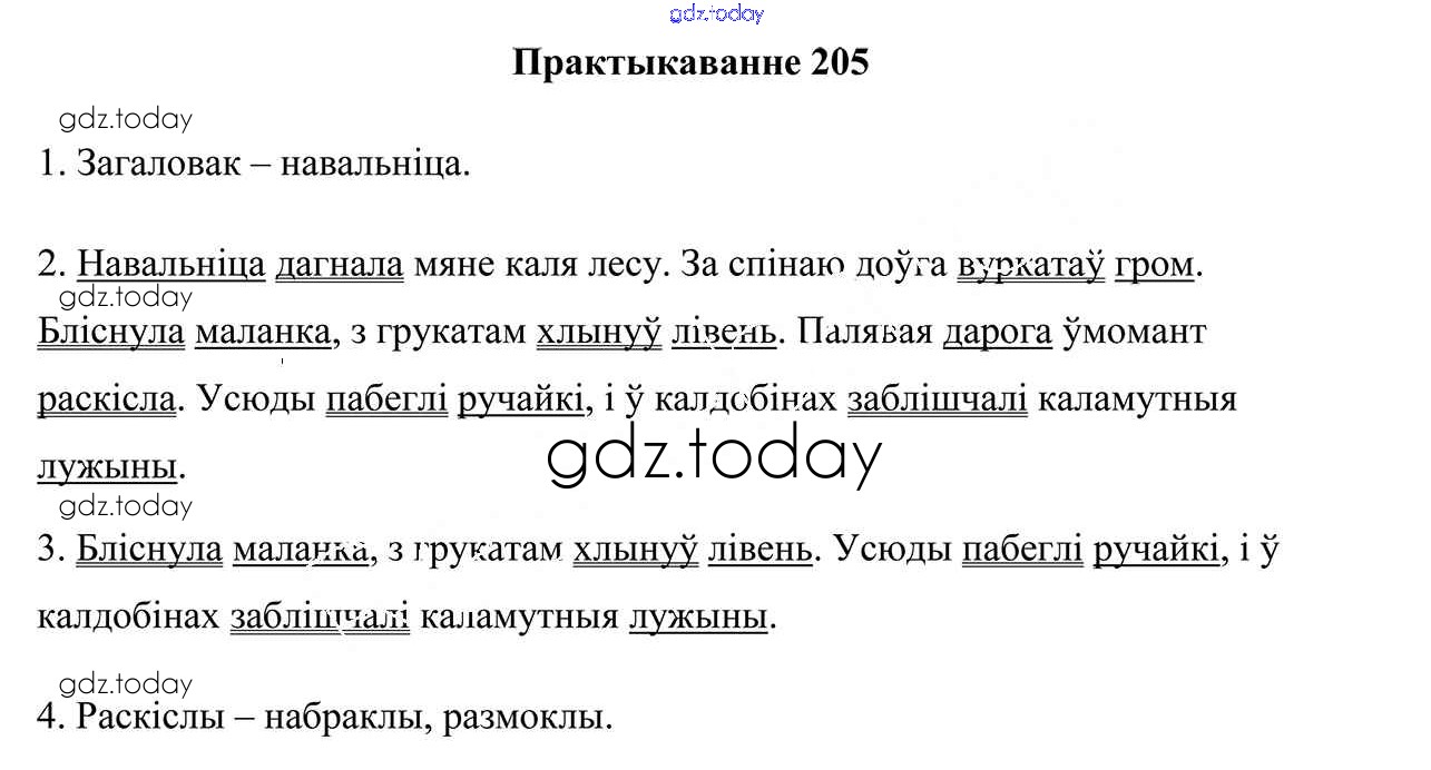 На страницах сайта gdz.today вы найдете учебный и вспомогательный материал, направленный на улучшения знаний школьной программы. ГДЗ - онлайн мир знаний Рашальнік да часткі 1. Практыкаванні 205 Учебнику по Белорусскому языку для 5 класса Валочка, Зелянко Национальный институт образования 2019