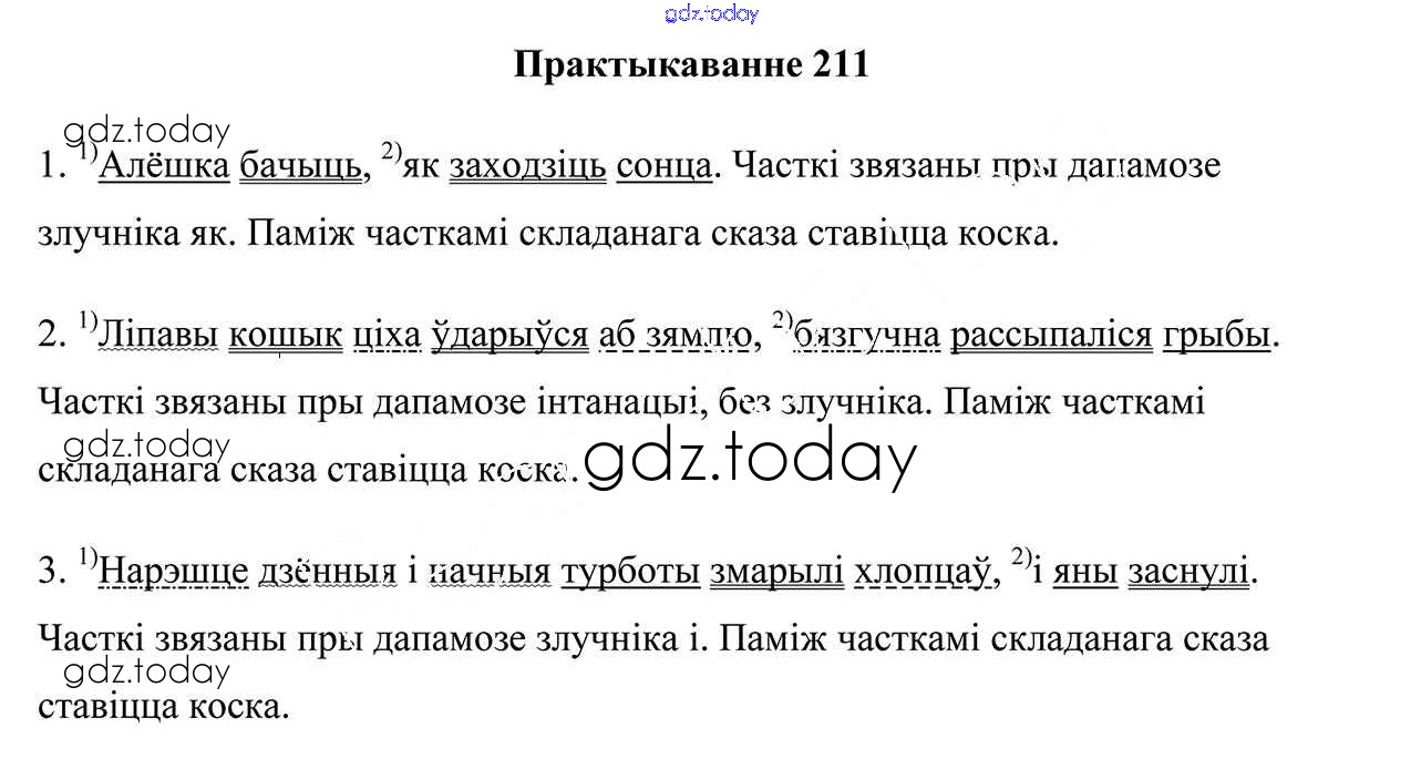 На страницах сайта gdz.today вы найдете учебный и вспомогательный материал, направленный на улучшения знаний школьной программы. ГДЗ - онлайн мир знаний Рашальнік да часткі 1. Практыкаванні 211 Учебнику по Белорусскому языку для 5 класса Валочка, Зелянко Национальный институт образования 2019