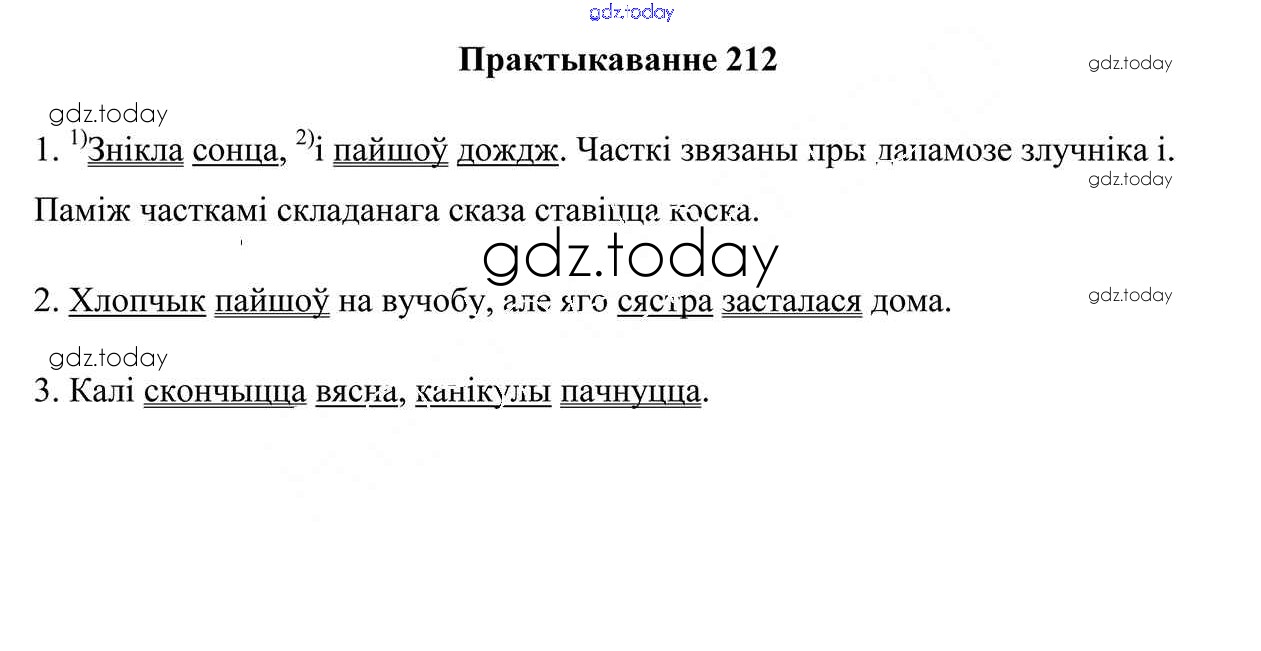 На страницах сайта gdz.today вы найдете учебный и вспомогательный материал, направленный на улучшения знаний школьной программы. ГДЗ - онлайн мир знаний Рашальнік да часткі 1. Практыкаванні 212 Учебнику по Белорусскому языку для 5 класса Валочка, Зелянко Национальный институт образования 2019