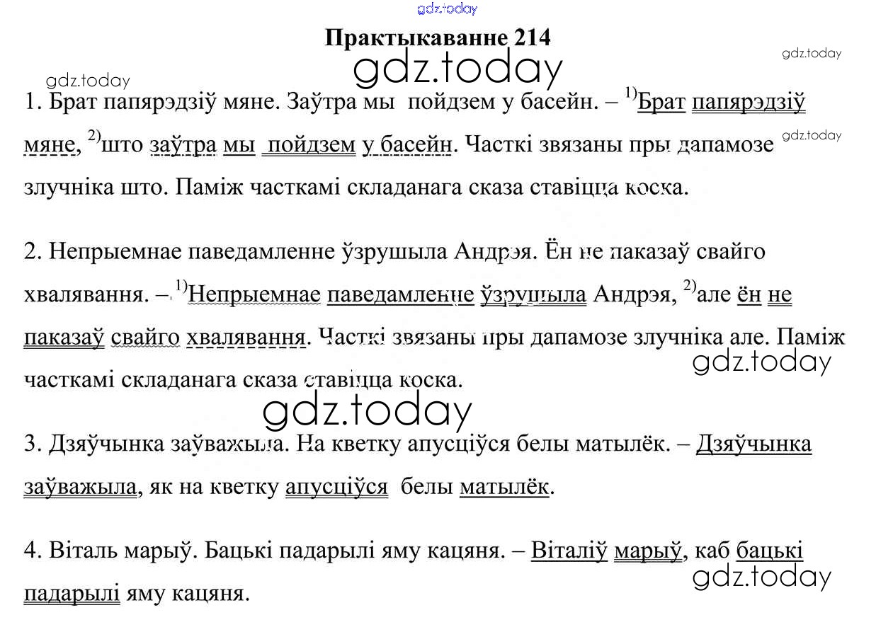 На страницах сайта gdz.today вы найдете учебный и вспомогательный материал, направленный на улучшения знаний школьной программы. ГДЗ - онлайн мир знаний Рашальнік да часткі 1. Практыкаванні 214 Учебнику по Белорусскому языку для 5 класса Валочка, Зелянко Национальный институт образования 2019