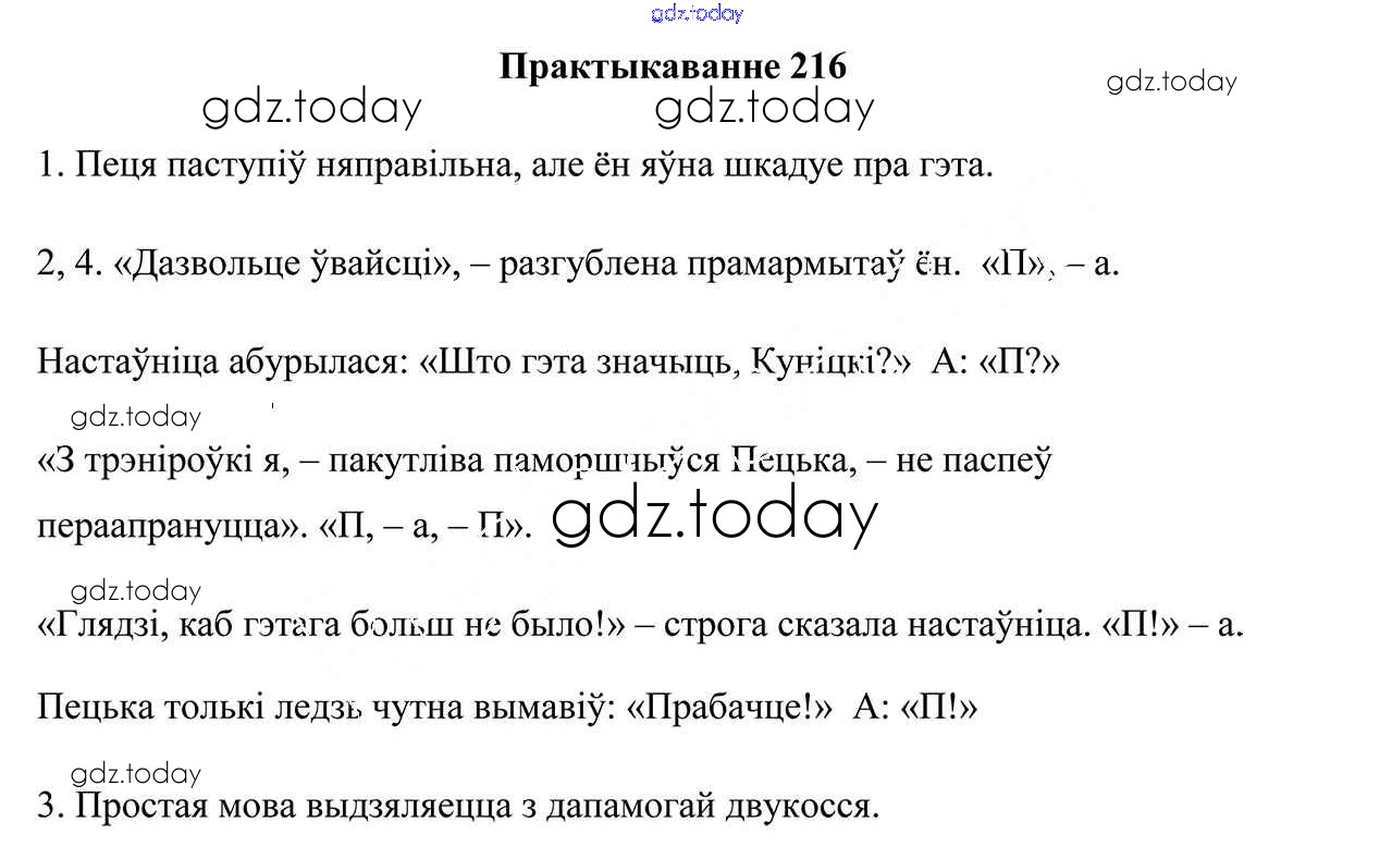 На страницах сайта gdz.today вы найдете учебный и вспомогательный материал, направленный на улучшения знаний школьной программы. ГДЗ - онлайн мир знаний Рашальнік да часткі 1. Практыкаванні 216 Учебнику по Белорусскому языку для 5 класса Валочка, Зелянко Национальный институт образования 2019