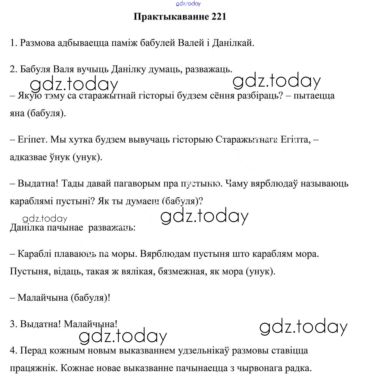 На страницах сайта gdz.today вы найдете учебный и вспомогательный материал, направленный на улучшения знаний школьной программы. ГДЗ - онлайн мир знаний Рашальнік да часткі 1. Практыкаванні 221 Учебнику по Белорусскому языку для 5 класса Валочка, Зелянко Национальный институт образования 2019