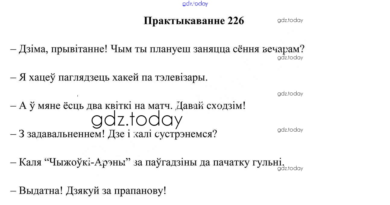 На страницах сайта gdz.today вы найдете учебный и вспомогательный материал, направленный на улучшения знаний школьной программы. ГДЗ - онлайн мир знаний Рашальнік да часткі 1. Практыкаванні 226 Учебнику по Белорусскому языку для 5 класса Валочка, Зелянко Национальный институт образования 2019