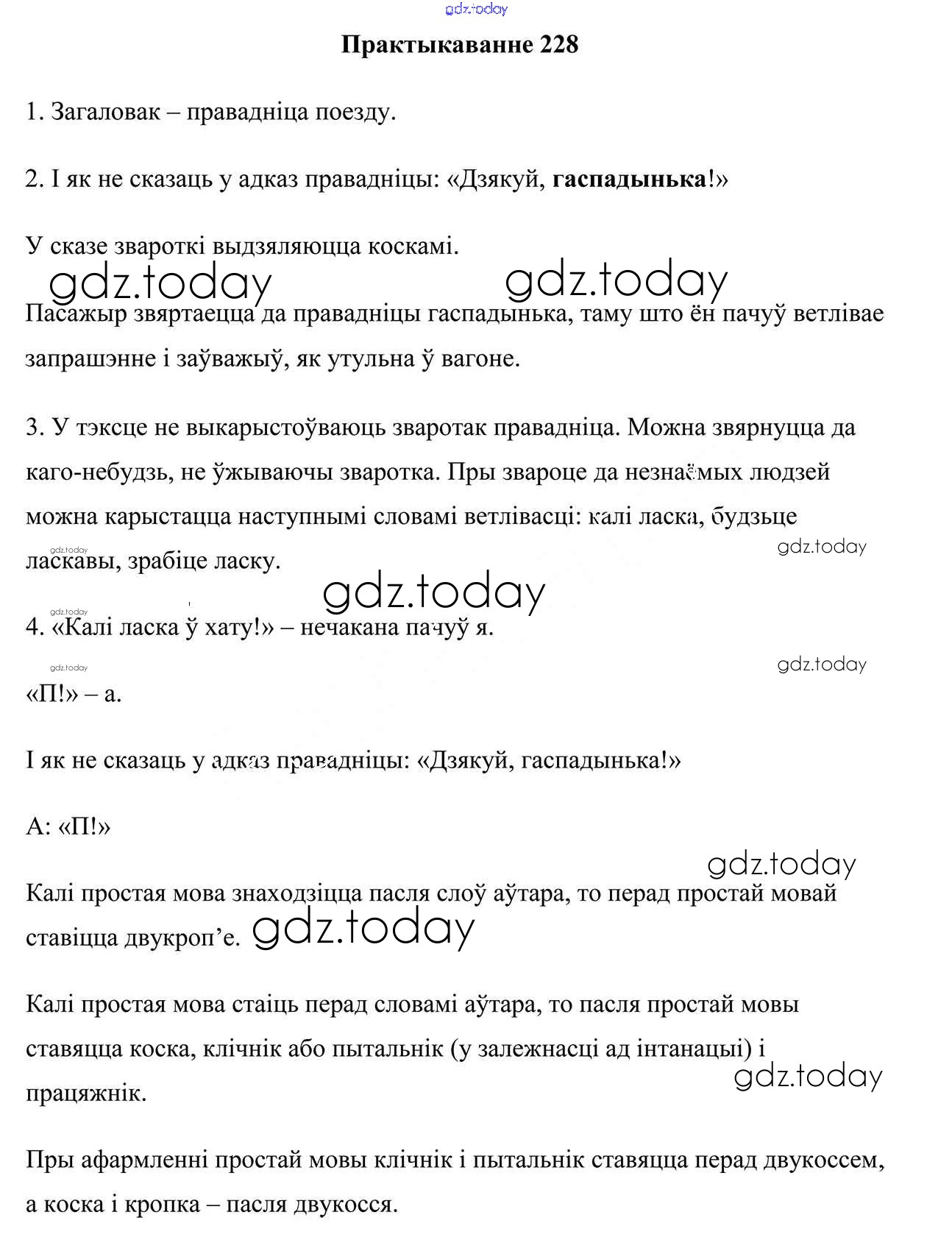 На страницах сайта gdz.today вы найдете учебный и вспомогательный материал, направленный на улучшения знаний школьной программы. ГДЗ - онлайн мир знаний Рашальнік да часткі 1. Практыкаванні 228 Учебнику по Белорусскому языку для 5 класса Валочка, Зелянко Национальный институт образования 2019