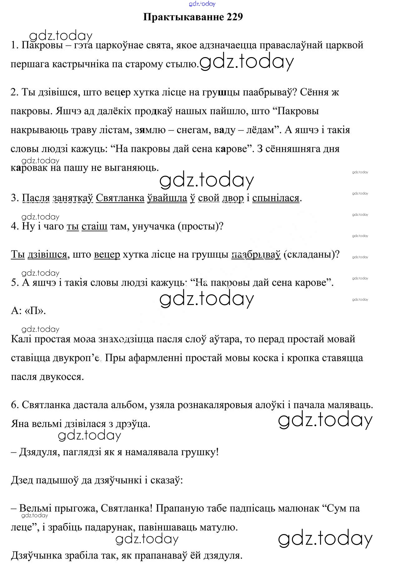 На страницах сайта gdz.today вы найдете учебный и вспомогательный материал, направленный на улучшения знаний школьной программы. ГДЗ - онлайн мир знаний Рашальнік да часткі 1. Практыкаванні 229 Учебнику по Белорусскому языку для 5 класса Валочка, Зелянко Национальный институт образования 2019