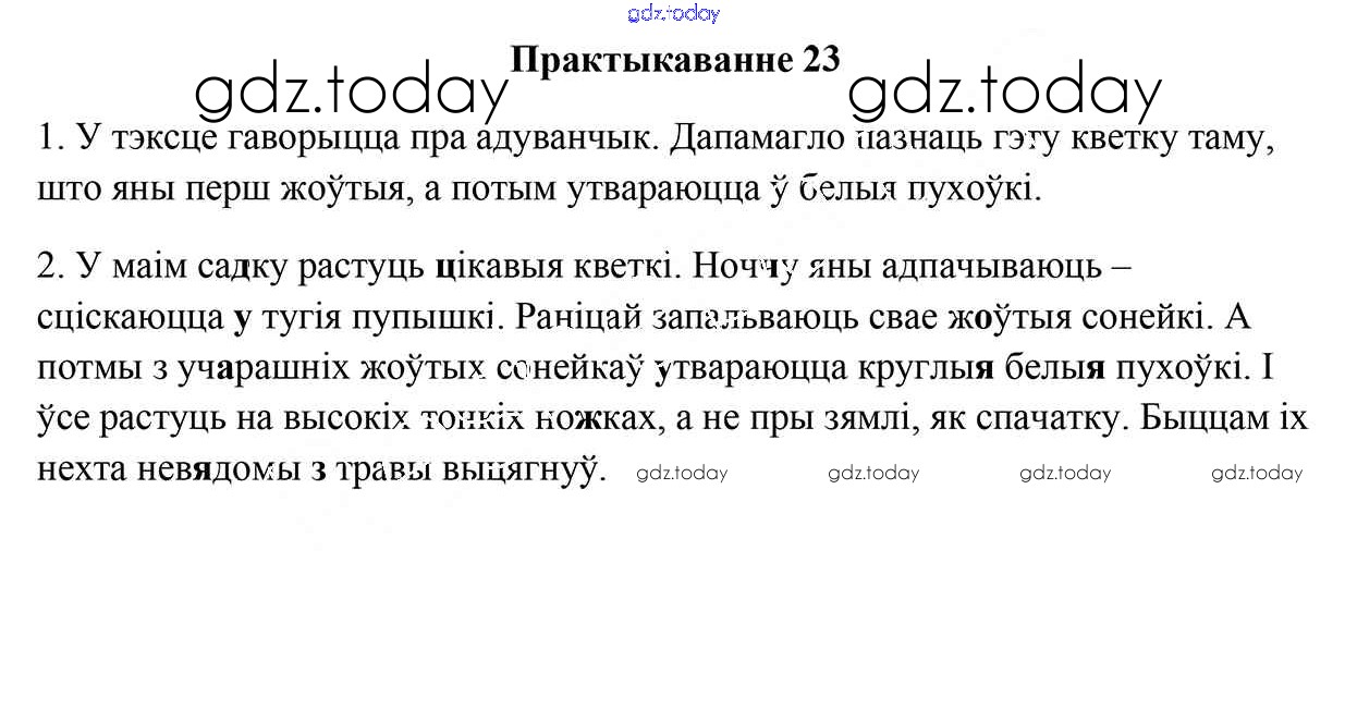 На страницах сайта gdz.today вы найдете учебный и вспомогательный материал, направленный на улучшения знаний школьной программы. ГДЗ - онлайн мир знаний Рашальнік да часткі 1. Практыкаванні 23 Учебнику по Белорусскому языку для 5 класса Валочка, Зелянко Национальный институт образования 2019