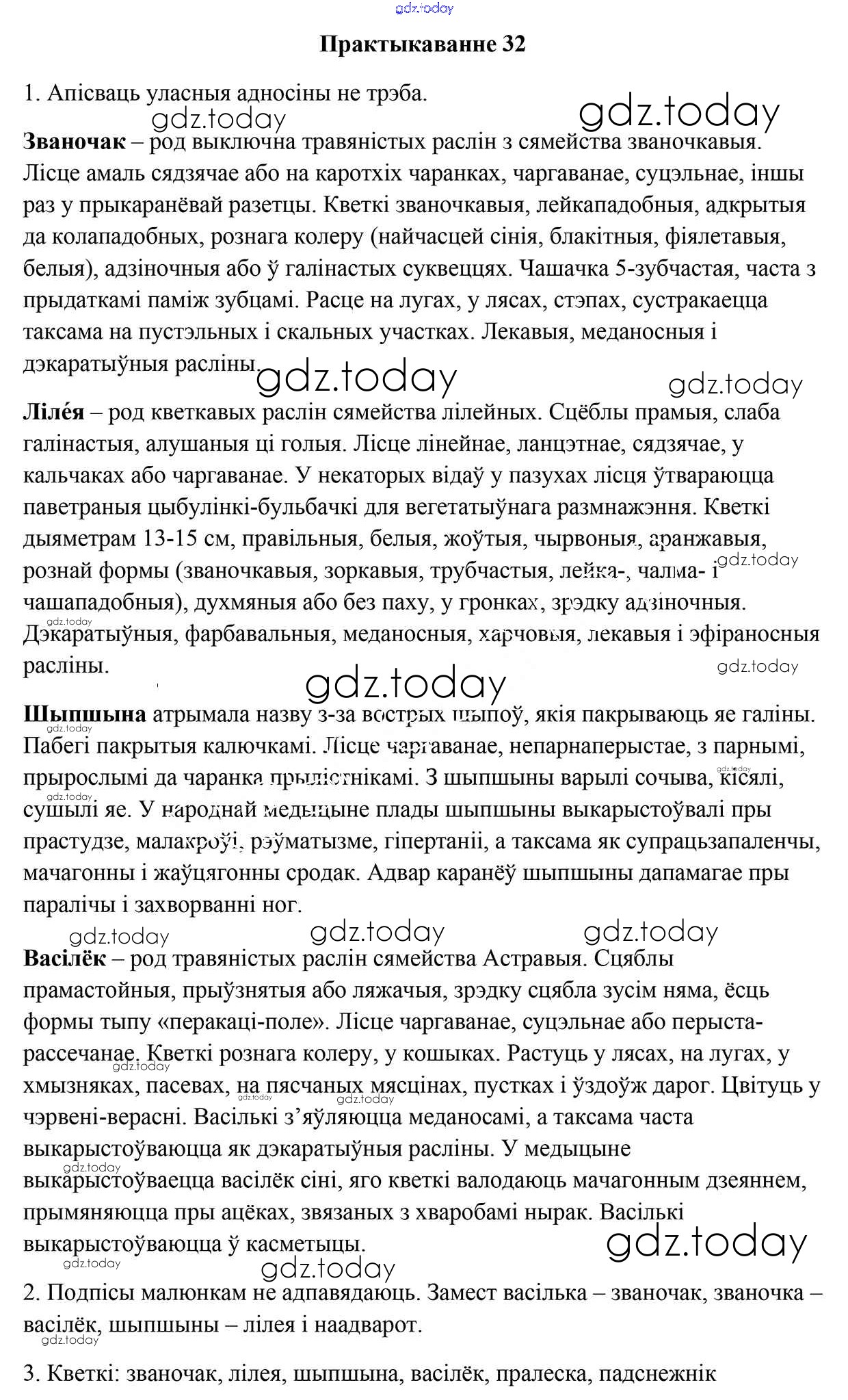 На страницах сайта gdz.today вы найдете учебный и вспомогательный материал, направленный на улучшения знаний школьной программы. ГДЗ - онлайн мир знаний Рашальнік да часткі 1. Практыкаванні 32 Учебнику по Белорусскому языку для 5 класса Валочка, Зелянко Национальный институт образования 2019