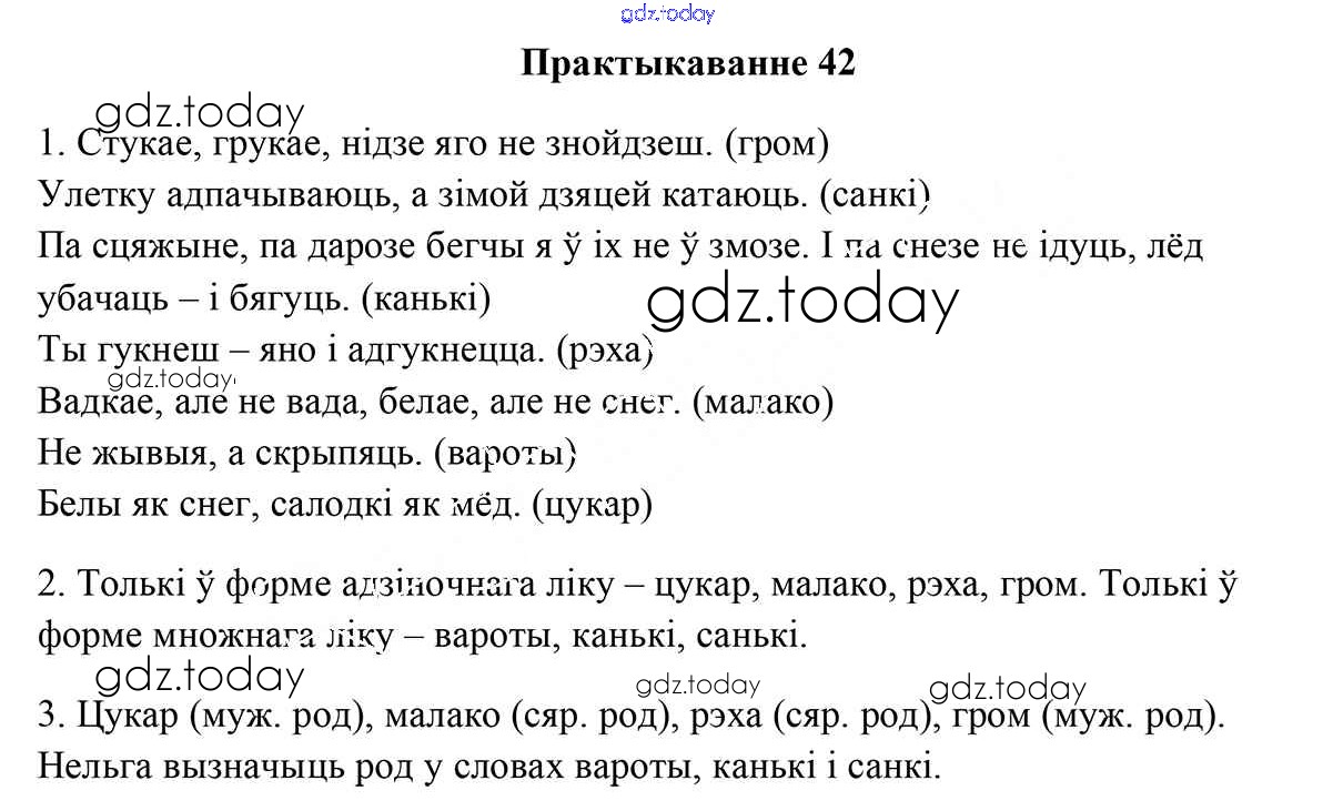 На страницах сайта gdz.today вы найдете учебный и вспомогательный материал, направленный на улучшения знаний школьной программы. ГДЗ - онлайн мир знаний Рашальнік да часткі 1. Практыкаванні 42 Учебнику по Белорусскому языку для 5 класса Валочка, Зелянко Национальный институт образования 2019