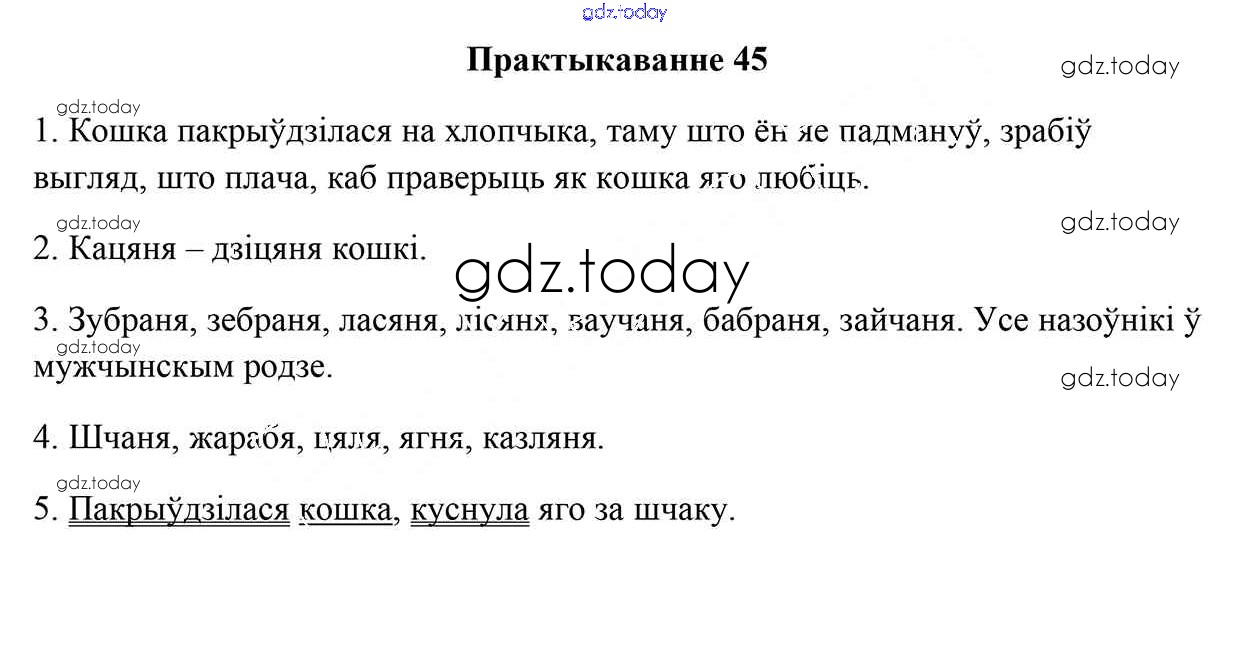 На страницах сайта gdz.today вы найдете учебный и вспомогательный материал, направленный на улучшения знаний школьной программы. ГДЗ - онлайн мир знаний Рашальнік да часткі 1. Практыкаванні 45 Учебнику по Белорусскому языку для 5 класса Валочка, Зелянко Национальный институт образования 2019