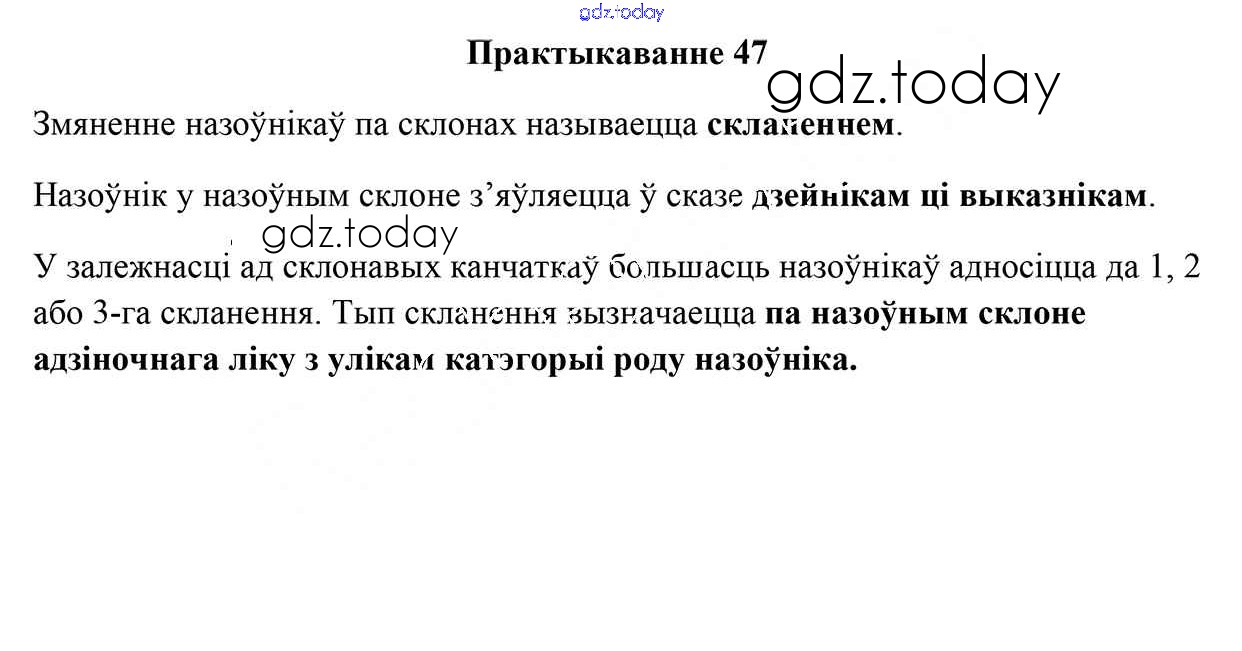 На страницах сайта gdz.today вы найдете учебный и вспомогательный материал, направленный на улучшения знаний школьной программы. ГДЗ - онлайн мир знаний Рашальнік да часткі 1. Практыкаванні 47 Учебнику по Белорусскому языку для 5 класса Валочка, Зелянко Национальный институт образования 2019