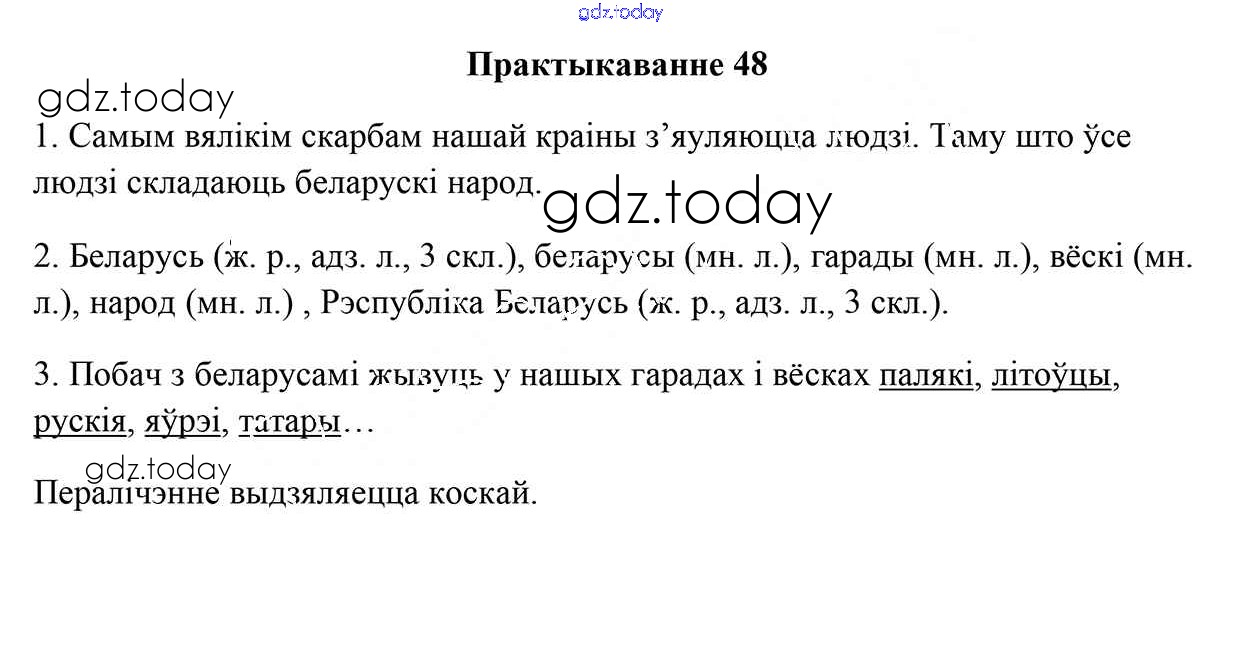 На страницах сайта gdz.today вы найдете учебный и вспомогательный материал, направленный на улучшения знаний школьной программы. ГДЗ - онлайн мир знаний Рашальнік да часткі 1. Практыкаванні 48 Учебнику по Белорусскому языку для 5 класса Валочка, Зелянко Национальный институт образования 2019