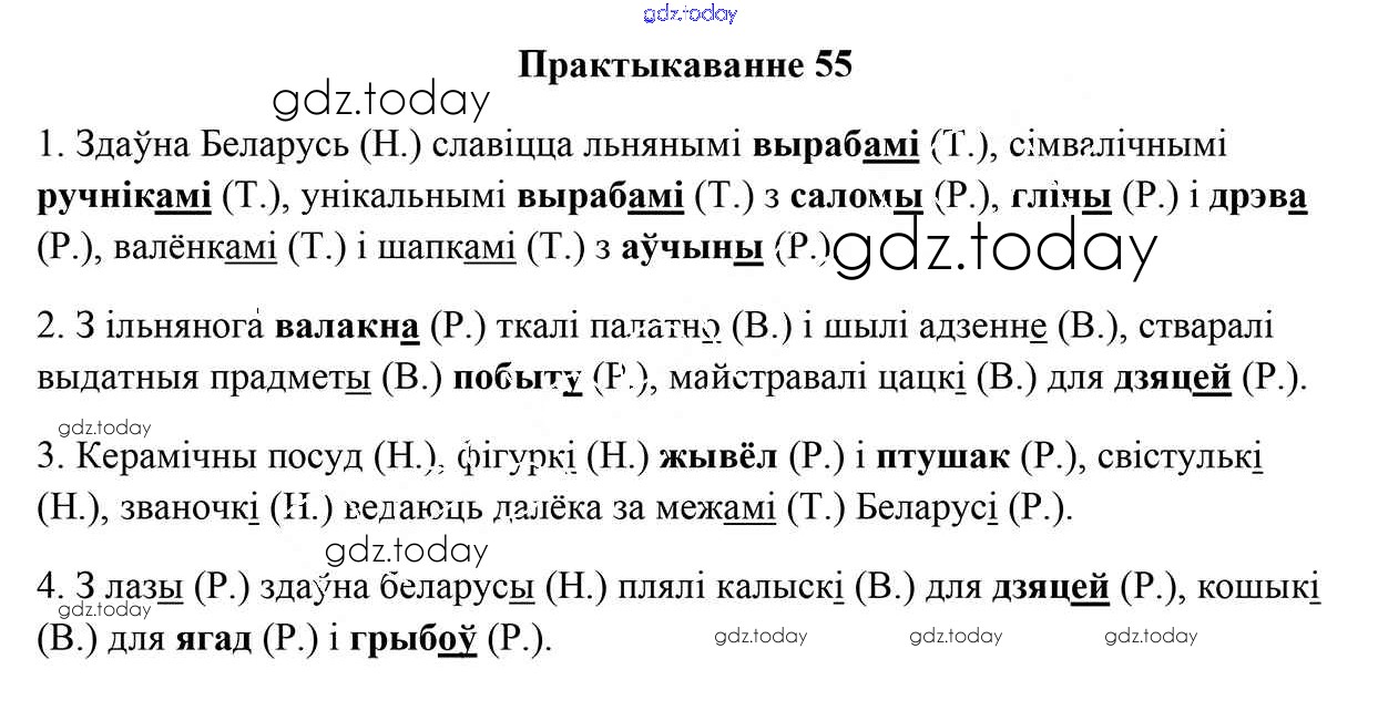 На страницах сайта gdz.today вы найдете учебный и вспомогательный материал, направленный на улучшения знаний школьной программы. ГДЗ - онлайн мир знаний Рашальнік да часткі 1. Практыкаванні 55 Учебнику по Белорусскому языку для 5 класса Валочка, Зелянко Национальный институт образования 2019