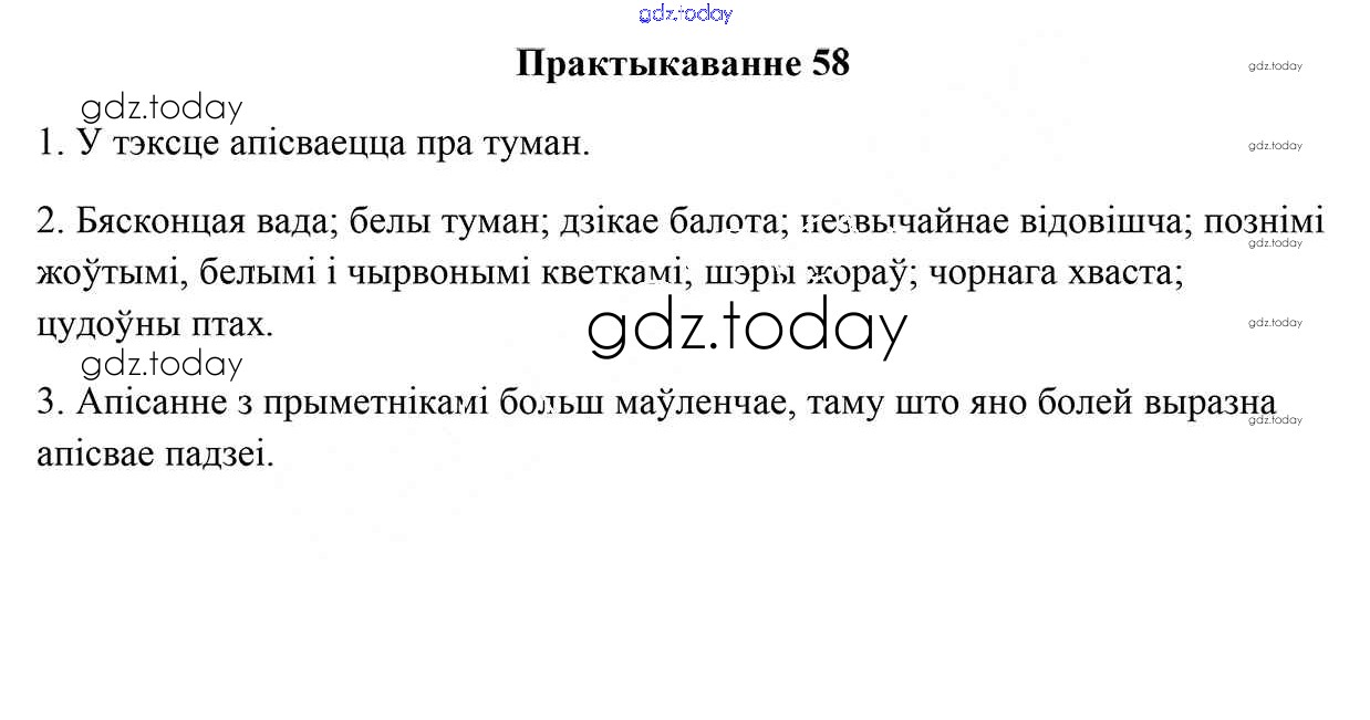 На страницах сайта gdz.today вы найдете учебный и вспомогательный материал, направленный на улучшения знаний школьной программы. ГДЗ - онлайн мир знаний Рашальнік да часткі 1. Практыкаванні 58 Учебнику по Белорусскому языку для 5 класса Валочка, Зелянко Национальный институт образования 2019