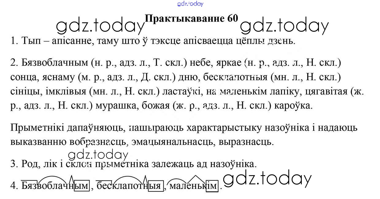 На страницах сайта gdz.today вы найдете учебный и вспомогательный материал, направленный на улучшения знаний школьной программы. ГДЗ - онлайн мир знаний Рашальнік да часткі 1. Практыкаванні 60 Учебнику по Белорусскому языку для 5 класса Валочка, Зелянко Национальный институт образования 2019