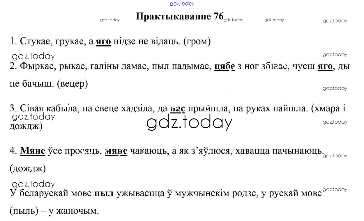 На страницах сайта gdz.today вы найдете учебный и вспомогательный материал, направленный на улучшения знаний школьной программы. ГДЗ - онлайн мир знаний Рашальнік да часткі 1. Практыкаванні 76 Учебнику по Белорусскому языку для 5 класса Валочка, Зелянко Национальный институт образования 2019