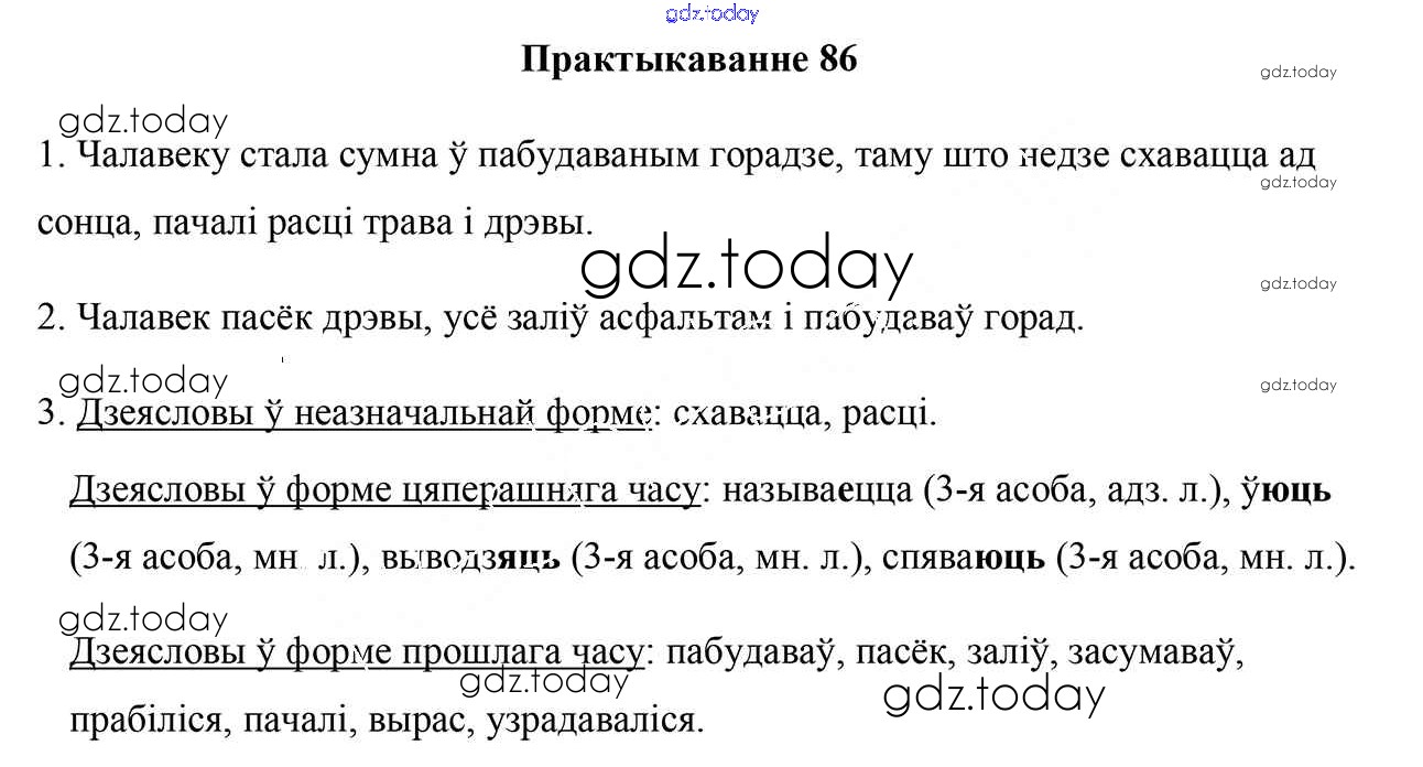 На страницах сайта gdz.today вы найдете учебный и вспомогательный материал, направленный на улучшения знаний школьной программы. ГДЗ - онлайн мир знаний Рашальнік да часткі 1. Практыкаванні 86 Учебнику по Белорусскому языку для 5 класса Валочка, Зелянко Национальный институт образования 2019