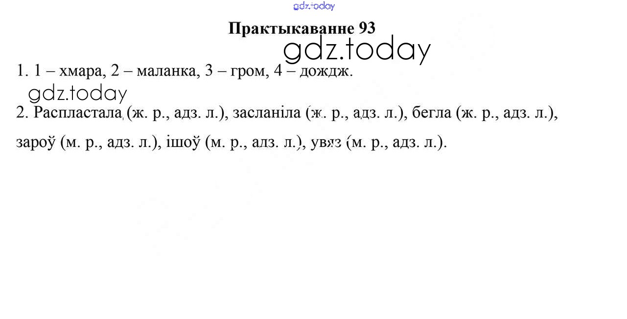 На страницах сайта gdz.today вы найдете учебный и вспомогательный материал, направленный на улучшения знаний школьной программы. ГДЗ - онлайн мир знаний Рашальнік да часткі 1. Практыкаванні 93 Учебнику по Белорусскому языку для 5 класса Валочка, Зелянко Национальный институт образования 2019