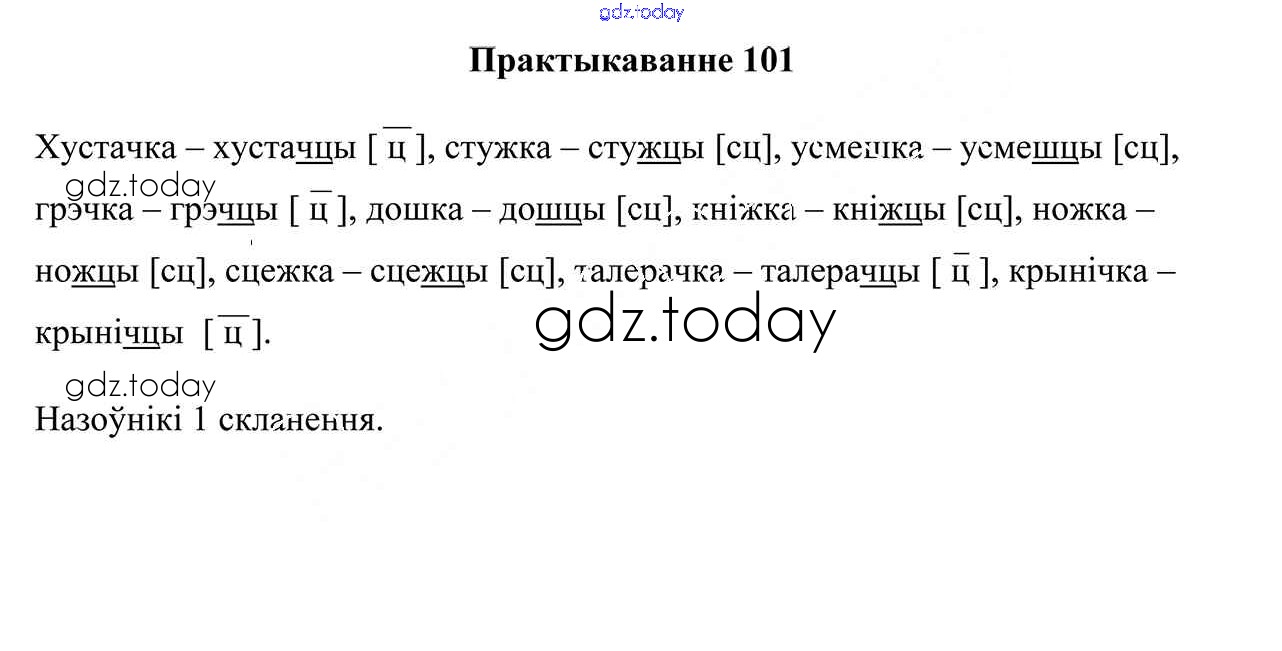 На страницах сайта gdz.today вы найдете учебный и вспомогательный материал, направленный на улучшения знаний школьной программы. ГДЗ - онлайн мир знаний Рашальнік да часткі 2. Практыкаванні 101 Учебнику по Белорусскому языку для 5 класса Валочка, Зелянко Национальный институт образования 2019