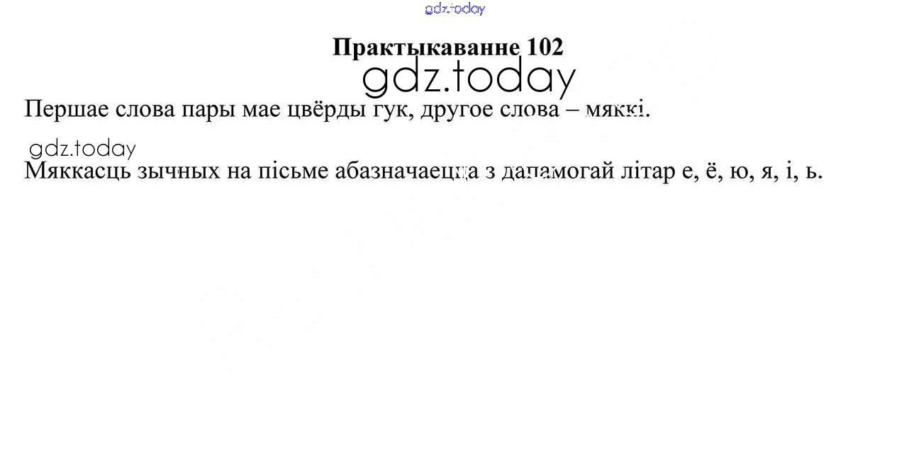 На страницах сайта gdz.today вы найдете учебный и вспомогательный материал, направленный на улучшения знаний школьной программы. ГДЗ - онлайн мир знаний Рашальнік да часткі 2. Практыкаванні 102 Учебнику по Белорусскому языку для 5 класса Валочка, Зелянко Национальный институт образования 2019