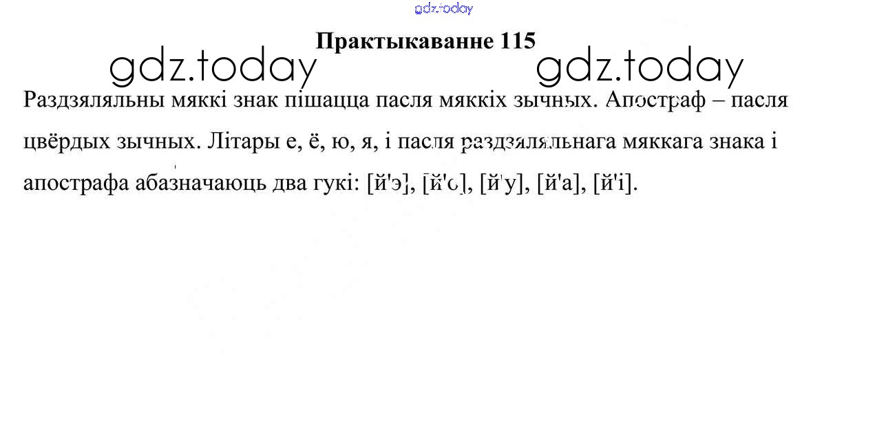 На страницах сайта gdz.today вы найдете учебный и вспомогательный материал, направленный на улучшения знаний школьной программы. ГДЗ - онлайн мир знаний Рашальнік да часткі 2. Практыкаванні 115 Учебнику по Белорусскому языку для 5 класса Валочка, Зелянко Национальный институт образования 2019