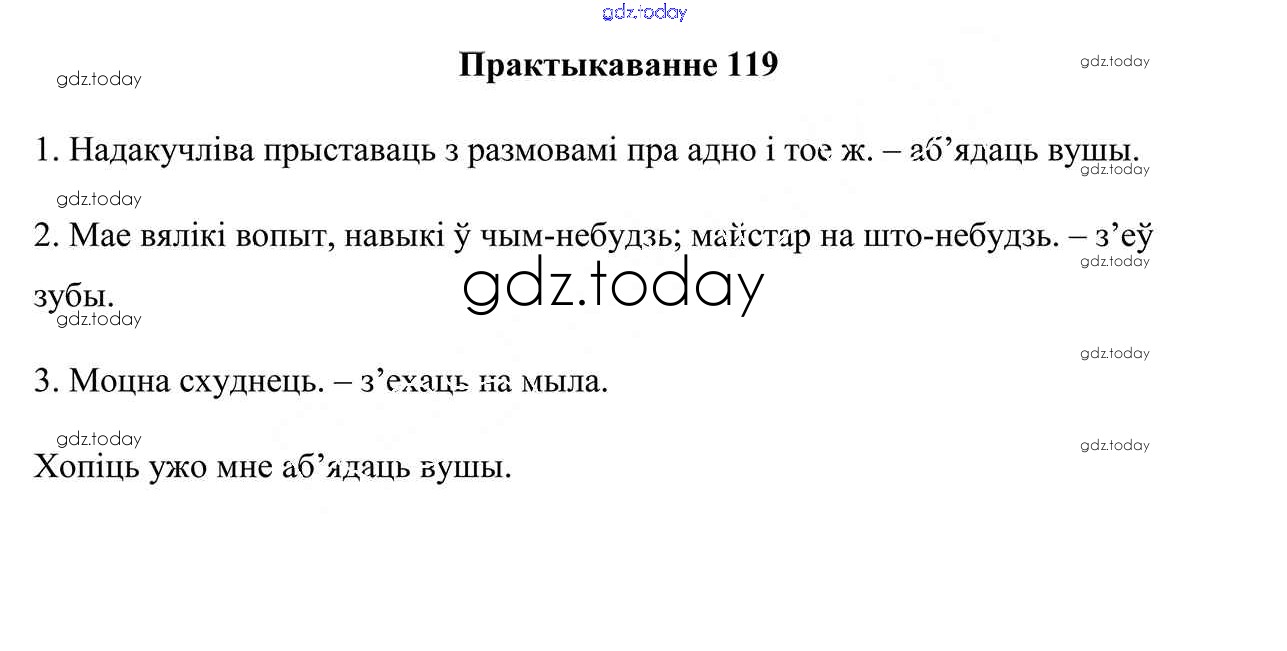 На страницах сайта gdz.today вы найдете учебный и вспомогательный материал, направленный на улучшения знаний школьной программы. ГДЗ - онлайн мир знаний Рашальнік да часткі 2. Практыкаванні 119 Учебнику по Белорусскому языку для 5 класса Валочка, Зелянко Национальный институт образования 2019