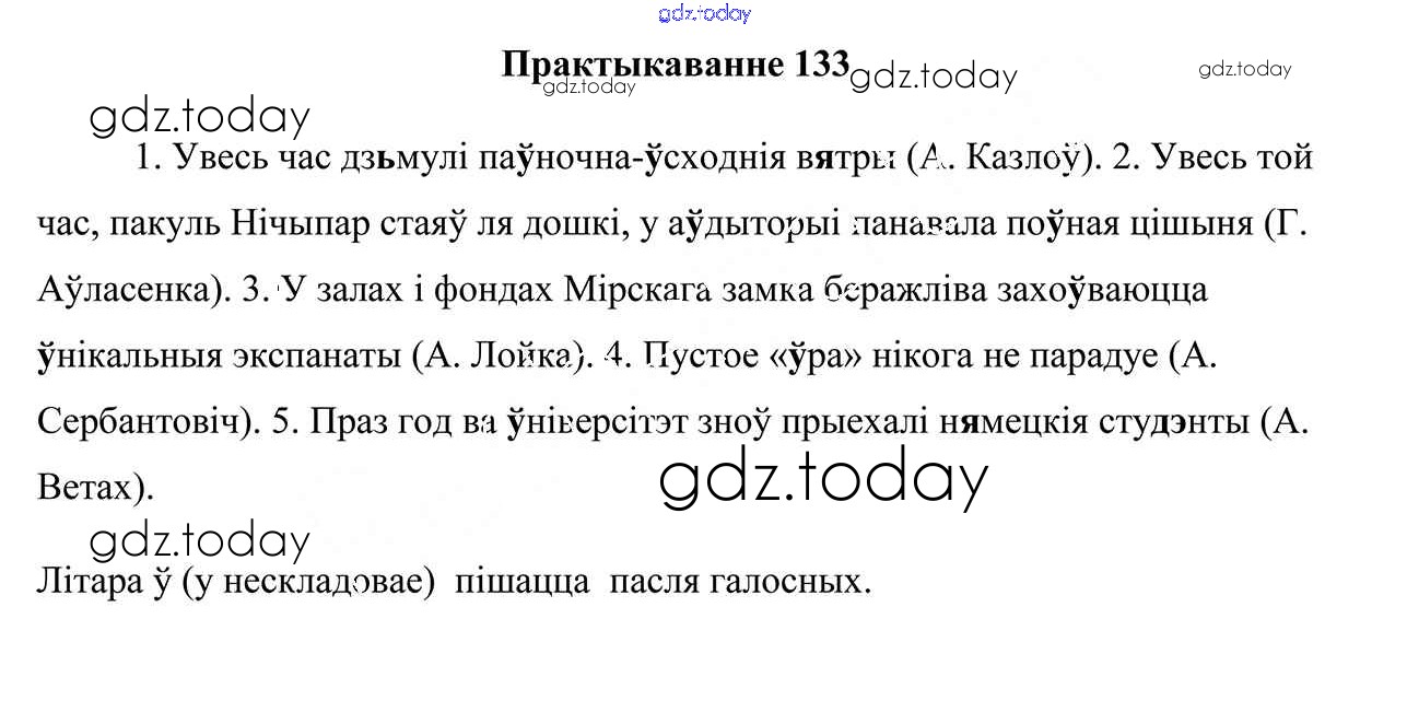 На страницах сайта gdz.today вы найдете учебный и вспомогательный материал, направленный на улучшения знаний школьной программы. ГДЗ - онлайн мир знаний Рашальнік да часткі 2. Практыкаванні 133 Учебнику по Белорусскому языку для 5 класса Валочка, Зелянко Национальный институт образования 2019