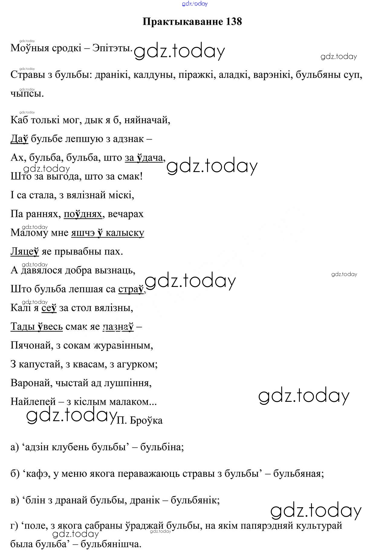 На страницах сайта gdz.today вы найдете учебный и вспомогательный материал, направленный на улучшения знаний школьной программы. ГДЗ - онлайн мир знаний Рашальнік да часткі 2. Практыкаванні 138 Учебнику по Белорусскому языку для 5 класса Валочка, Зелянко Национальный институт образования 2019