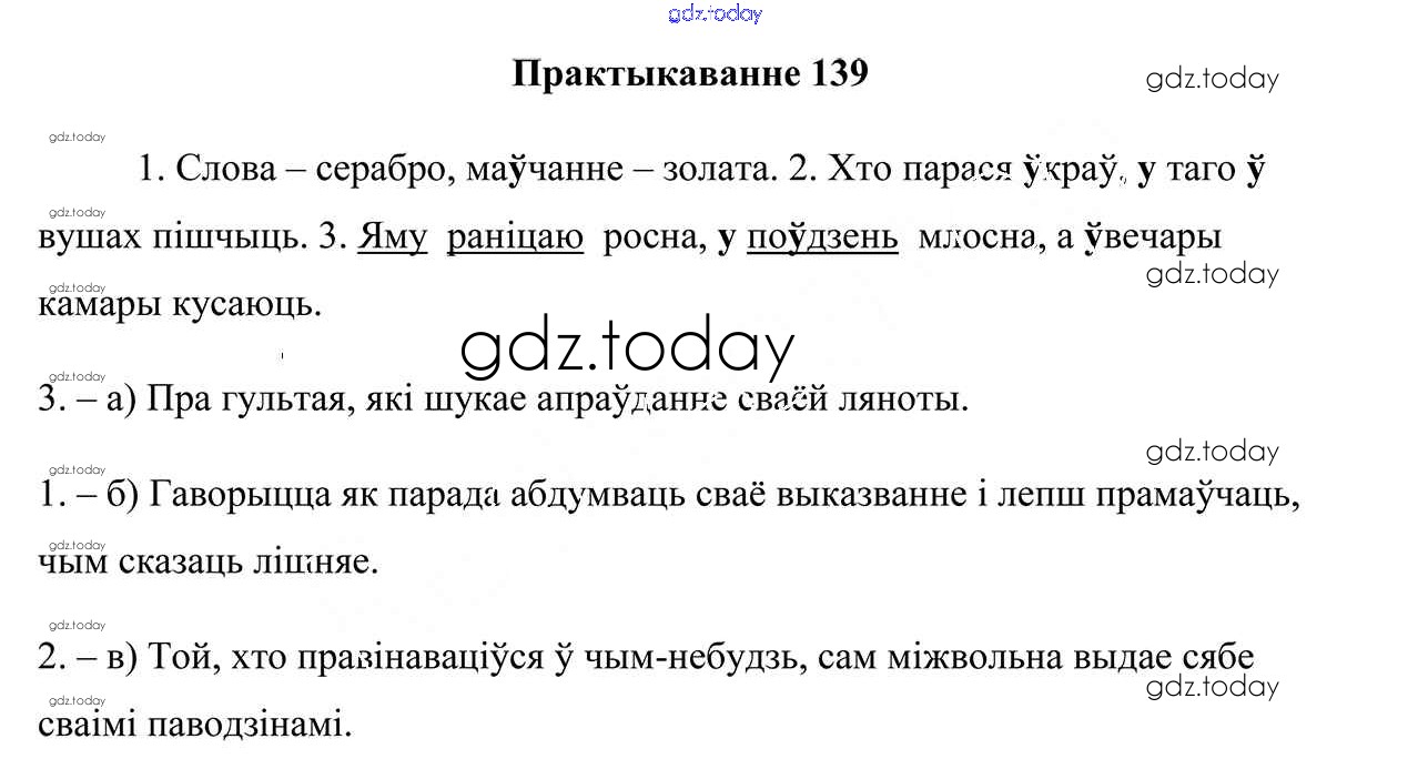 На страницах сайта gdz.today вы найдете учебный и вспомогательный материал, направленный на улучшения знаний школьной программы. ГДЗ - онлайн мир знаний Рашальнік да часткі 2. Практыкаванні 139 Учебнику по Белорусскому языку для 5 класса Валочка, Зелянко Национальный институт образования 2019