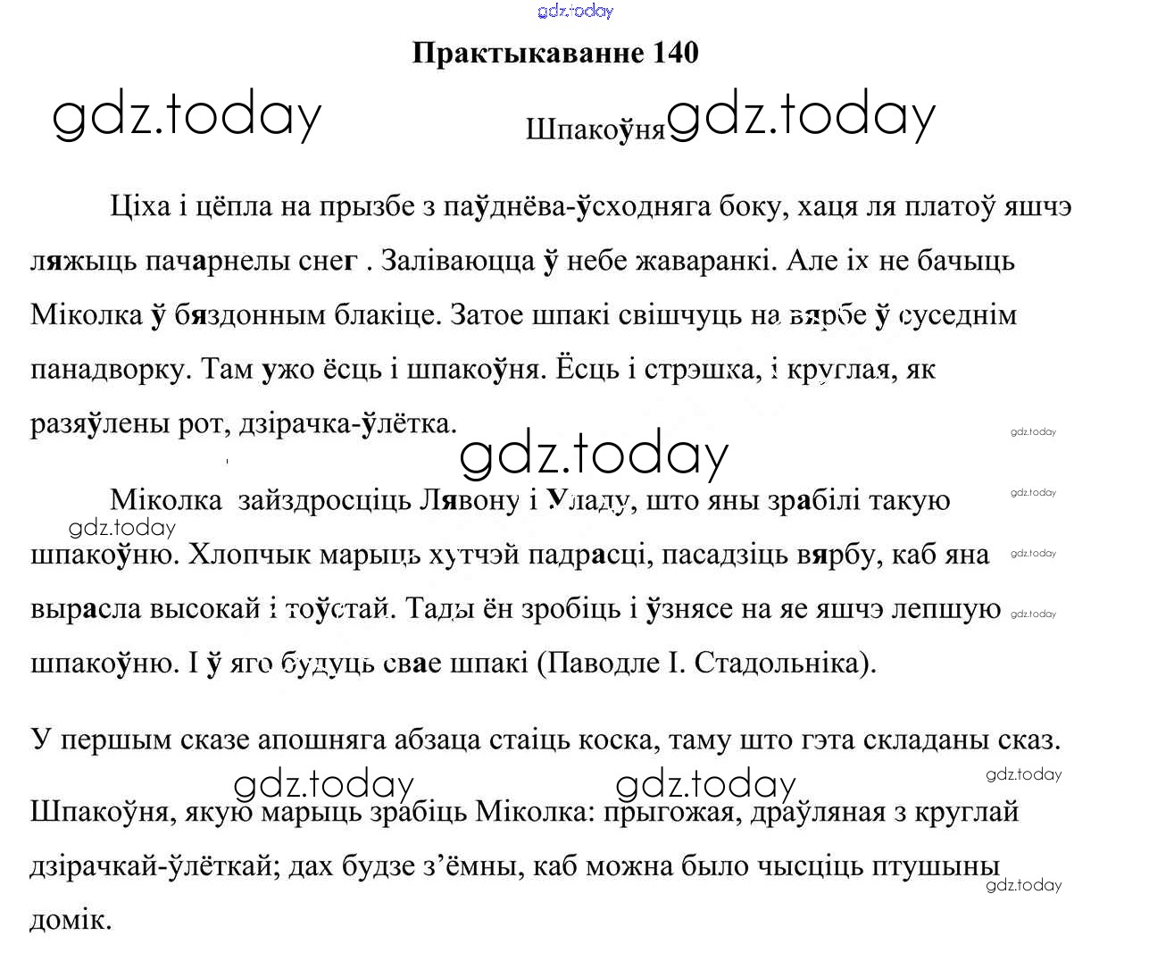 На страницах сайта gdz.today вы найдете учебный и вспомогательный материал, направленный на улучшения знаний школьной программы. ГДЗ - онлайн мир знаний Рашальнік да часткі 2. Практыкаванні 140 Учебнику по Белорусскому языку для 5 класса Валочка, Зелянко Национальный институт образования 2019