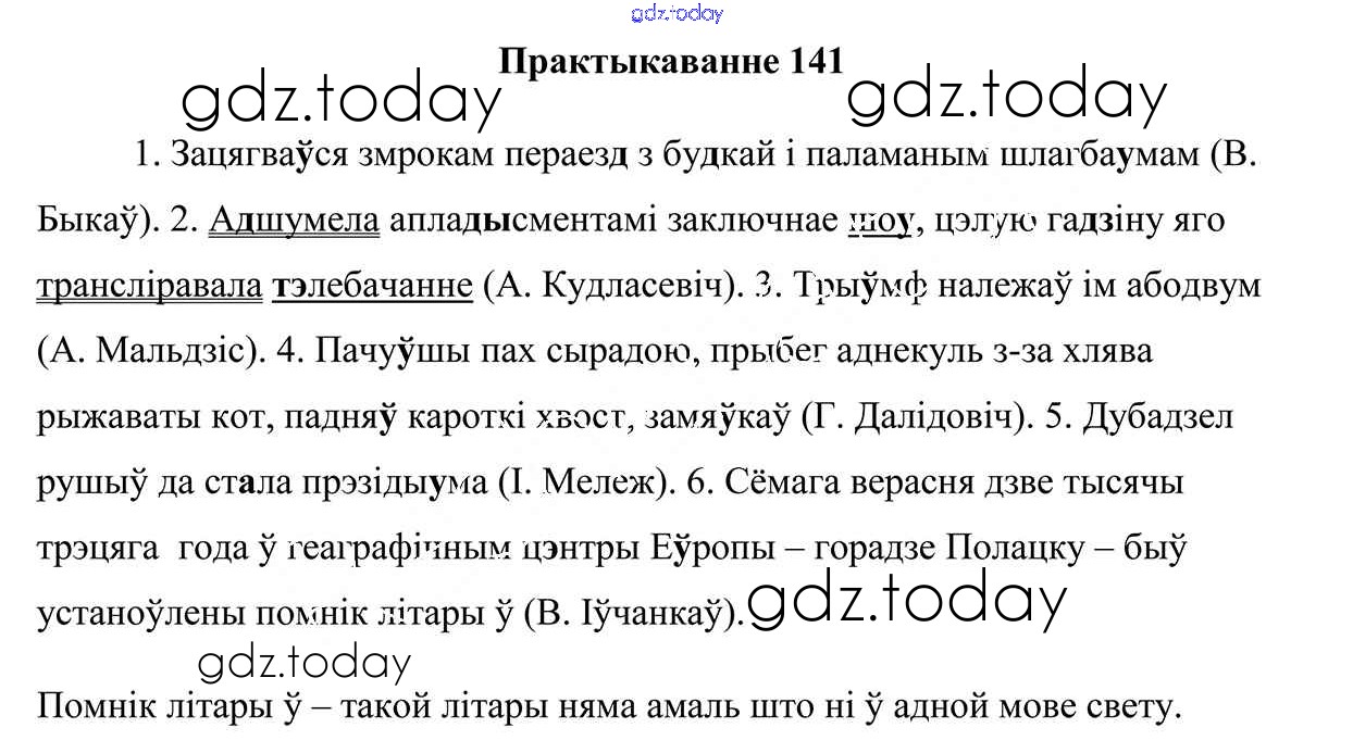 На страницах сайта gdz.today вы найдете учебный и вспомогательный материал, направленный на улучшения знаний школьной программы. ГДЗ - онлайн мир знаний Рашальнік да часткі 2. Практыкаванні 141 Учебнику по Белорусскому языку для 5 класса Валочка, Зелянко Национальный институт образования 2019
