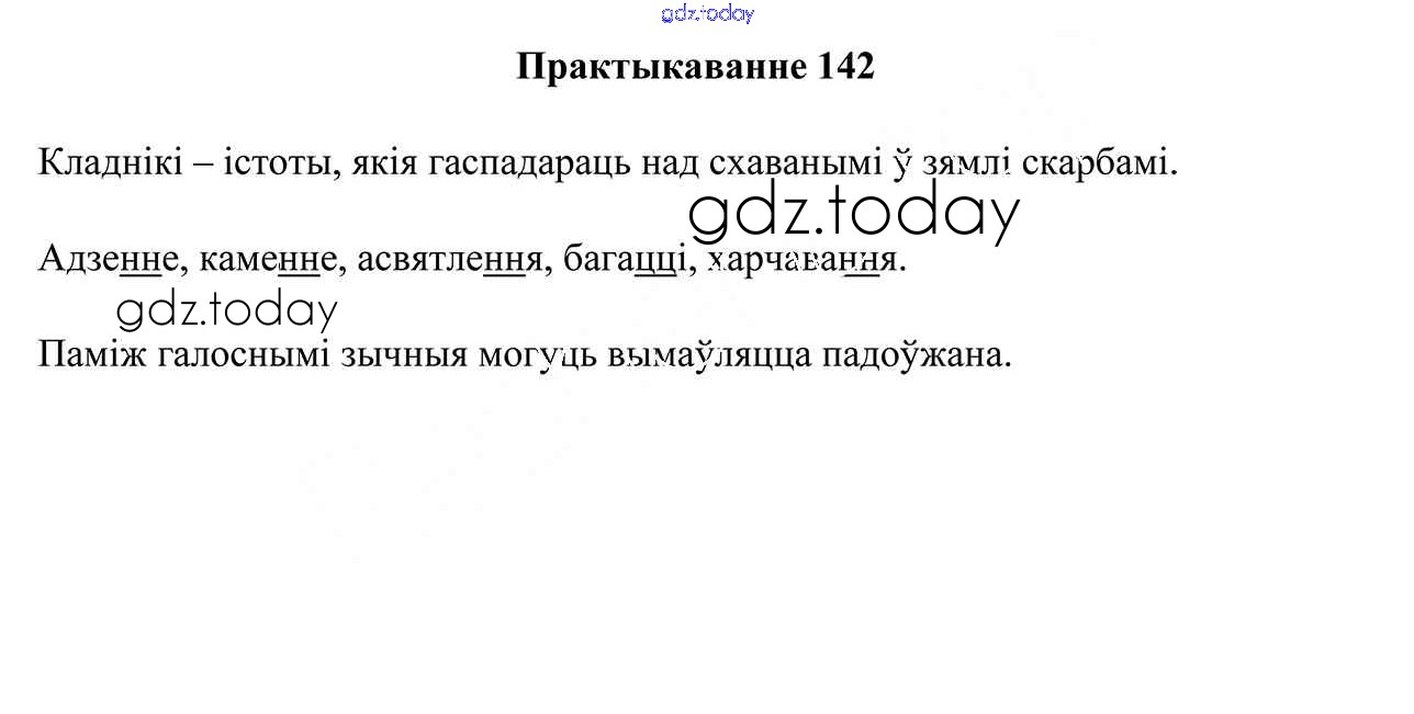 На страницах сайта gdz.today вы найдете учебный и вспомогательный материал, направленный на улучшения знаний школьной программы. ГДЗ - онлайн мир знаний Рашальнік да часткі 2. Практыкаванні 142 Учебнику по Белорусскому языку для 5 класса Валочка, Зелянко Национальный институт образования 2019
