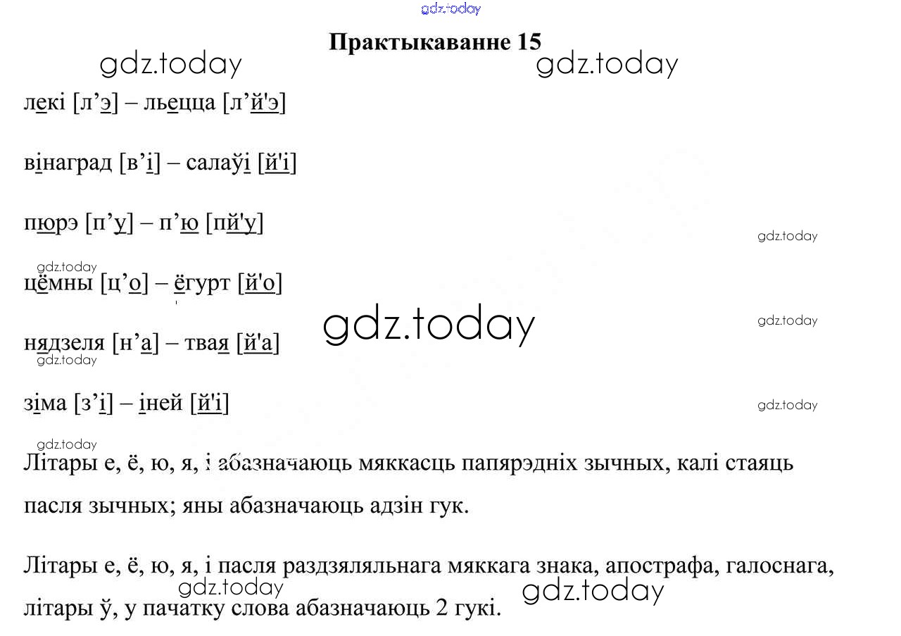 На страницах сайта gdz.today вы найдете учебный и вспомогательный материал, направленный на улучшения знаний школьной программы. ГДЗ - онлайн мир знаний Рашальнік да часткі 2. Практыкаванні 15 Учебнику по Белорусскому языку для 5 класса Валочка, Зелянко Национальный институт образования 2019
