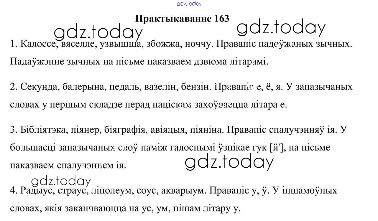 На страницах сайта gdz.today вы найдете учебный и вспомогательный материал, направленный на улучшения знаний школьной программы. ГДЗ - онлайн мир знаний Рашальнік да часткі 2. Практыкаванні 163 Учебнику по Белорусскому языку для 5 класса Валочка, Зелянко Национальный институт образования 2019