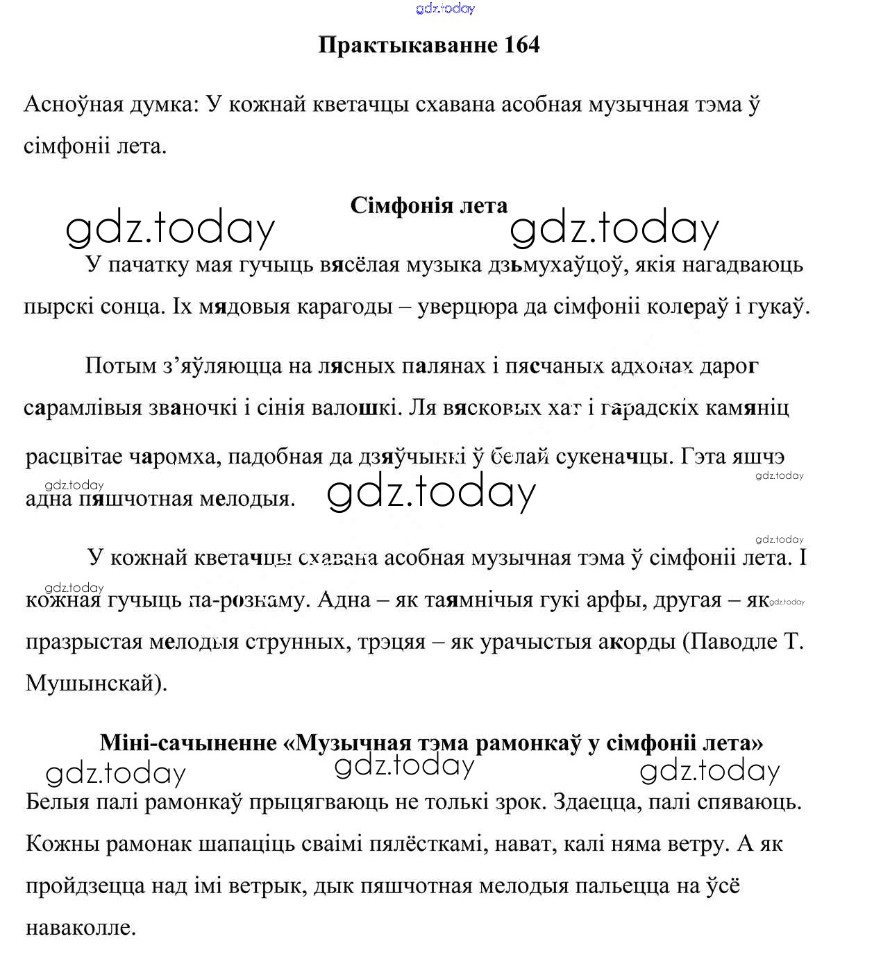 На страницах сайта gdz.today вы найдете учебный и вспомогательный материал, направленный на улучшения знаний школьной программы. ГДЗ - онлайн мир знаний Рашальнік да часткі 2. Практыкаванні 164 Учебнику по Белорусскому языку для 5 класса Валочка, Зелянко Национальный институт образования 2019