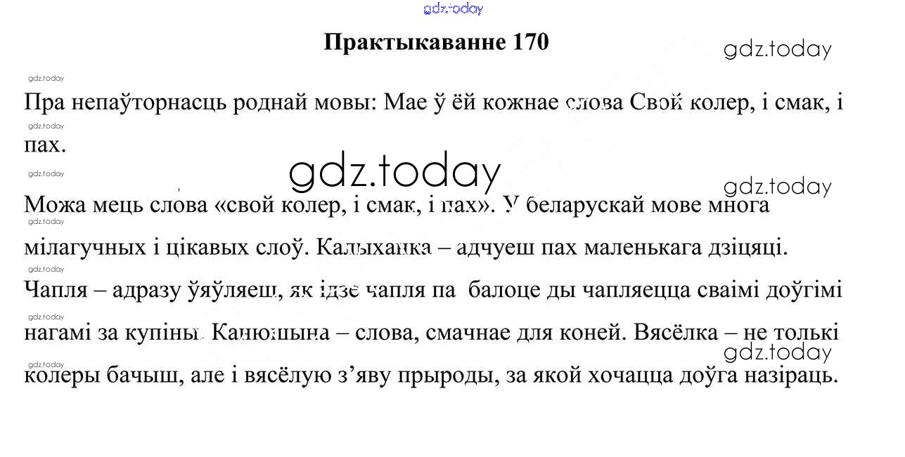 На страницах сайта gdz.today вы найдете учебный и вспомогательный материал, направленный на улучшения знаний школьной программы. ГДЗ - онлайн мир знаний Рашальнік да часткі 2. Практыкаванні 170 Учебнику по Белорусскому языку для 5 класса Валочка, Зелянко Национальный институт образования 2019