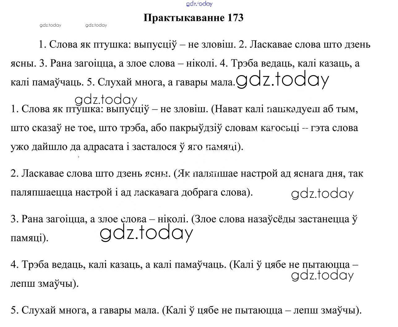 На страницах сайта gdz.today вы найдете учебный и вспомогательный материал, направленный на улучшения знаний школьной программы. ГДЗ - онлайн мир знаний Рашальнік да часткі 2. Практыкаванні 173 Учебнику по Белорусскому языку для 5 класса Валочка, Зелянко Национальный институт образования 2019
