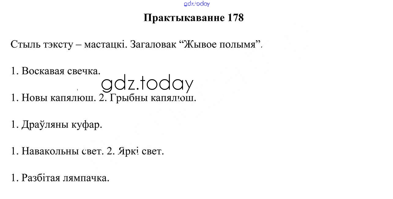 На страницах сайта gdz.today вы найдете учебный и вспомогательный материал, направленный на улучшения знаний школьной программы. ГДЗ - онлайн мир знаний Рашальнік да часткі 2. Практыкаванні 178 Учебнику по Белорусскому языку для 5 класса Валочка, Зелянко Национальный институт образования 2019