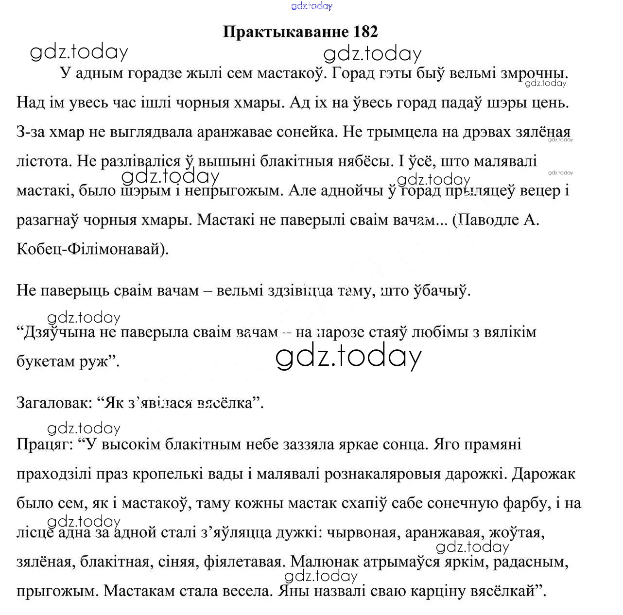 На страницах сайта gdz.today вы найдете учебный и вспомогательный материал, направленный на улучшения знаний школьной программы. ГДЗ - онлайн мир знаний Рашальнік да часткі 2. Практыкаванні 182 Учебнику по Белорусскому языку для 5 класса Валочка, Зелянко Национальный институт образования 2019