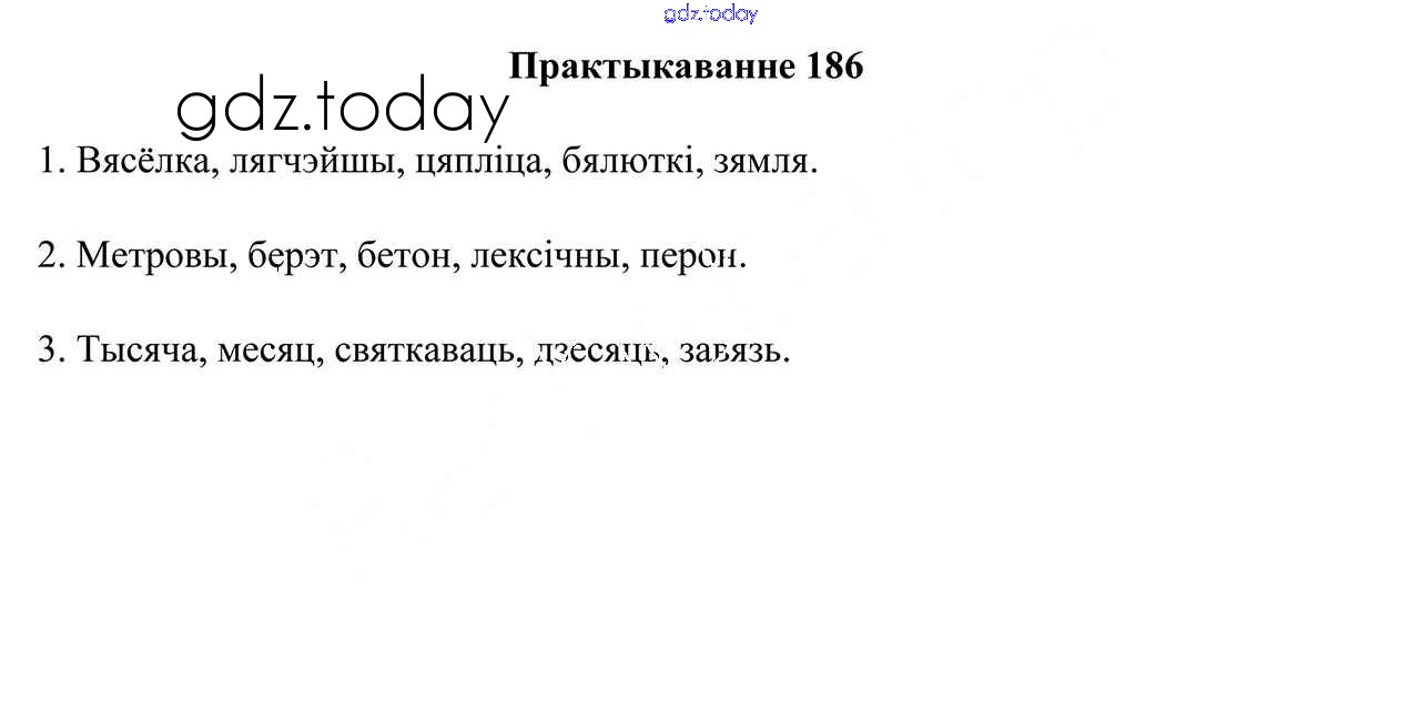 На страницах сайта gdz.today вы найдете учебный и вспомогательный материал, направленный на улучшения знаний школьной программы. ГДЗ - онлайн мир знаний Рашальнік да часткі 2. Практыкаванні 186 Учебнику по Белорусскому языку для 5 класса Валочка, Зелянко Национальный институт образования 2019